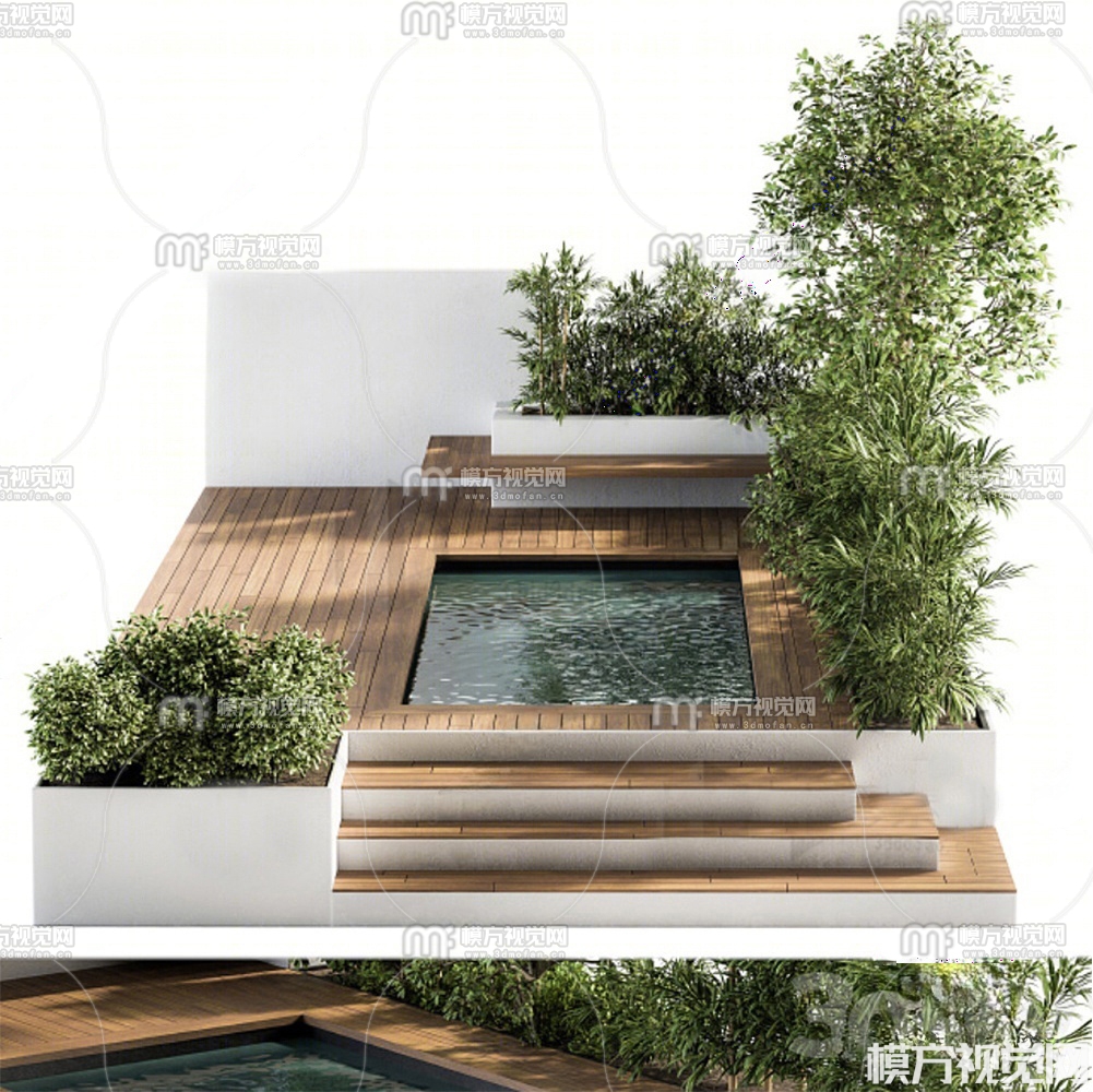 现代庭院绿植水池景观3D模型(ID:0026720)