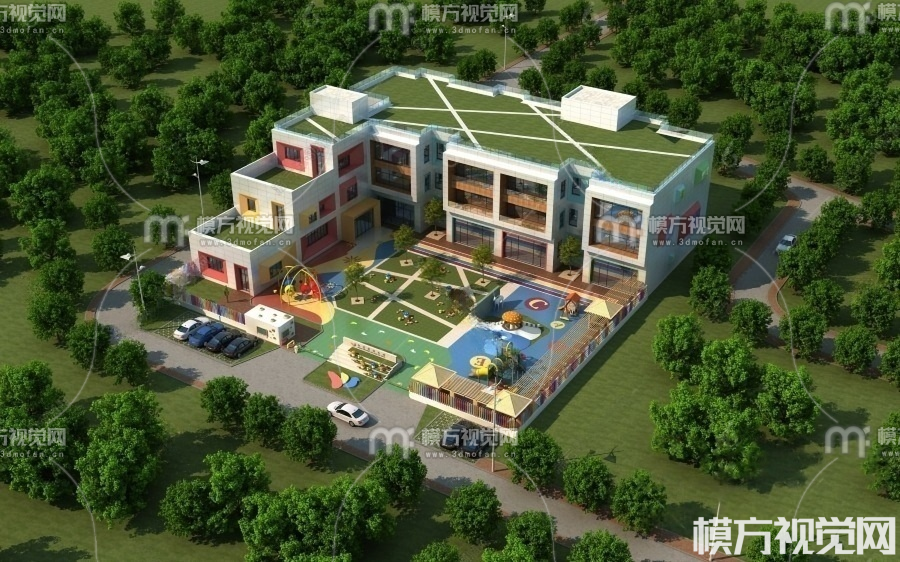 幼儿园建筑鸟瞰3D模型(ID:0026989)