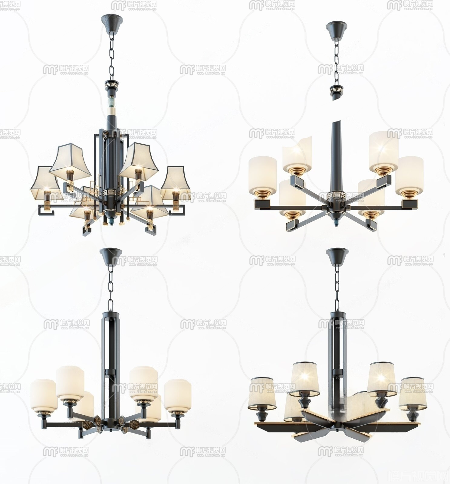 新中式吊灯组合3D模型(ID:0027077)