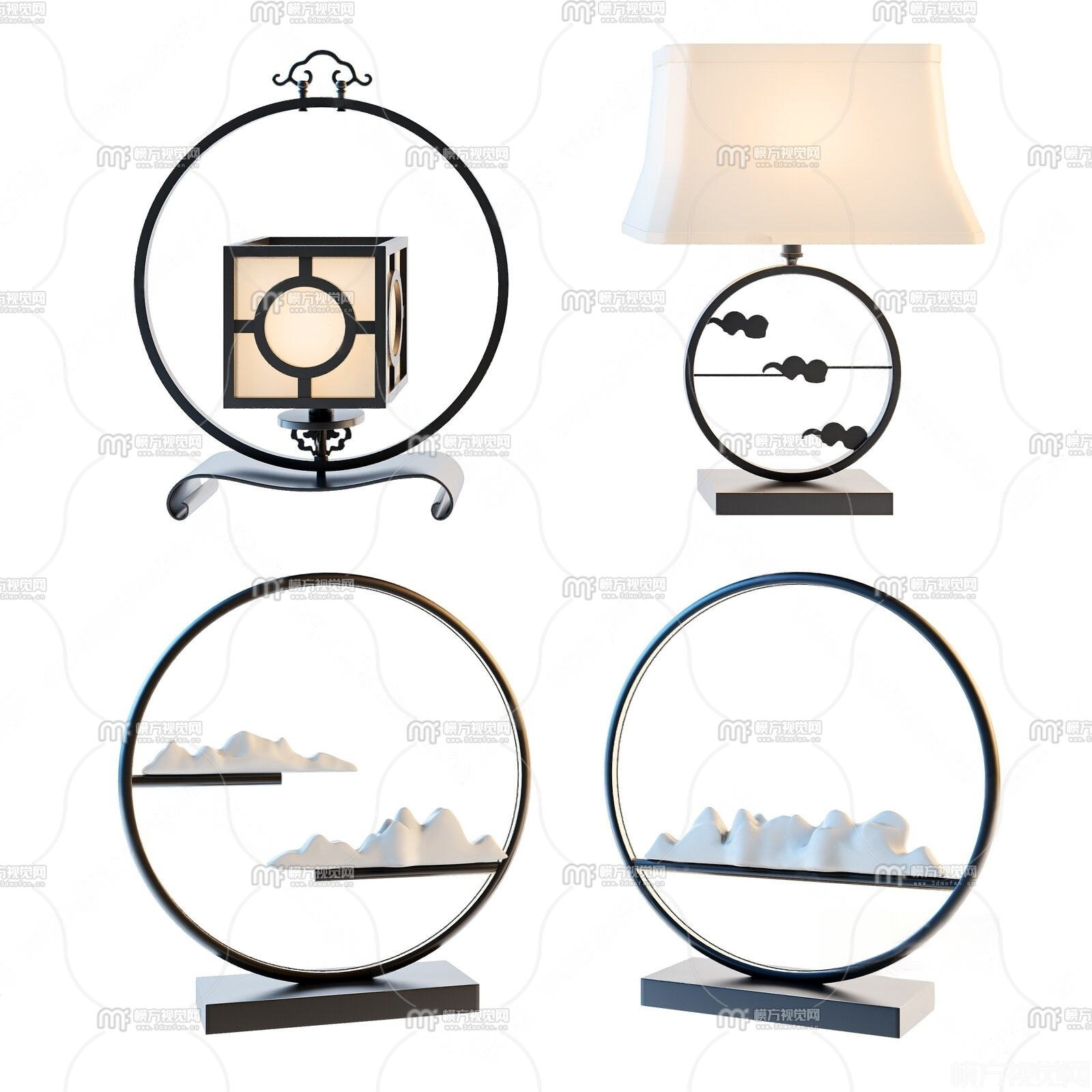新中式台灯组合3D模型(ID:0027081)