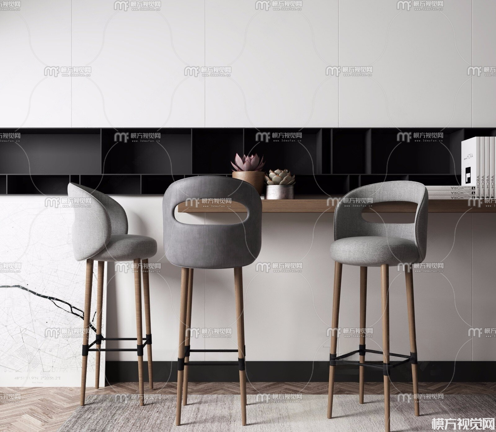 现代吧椅 吧台3D模型(ID:0027102)