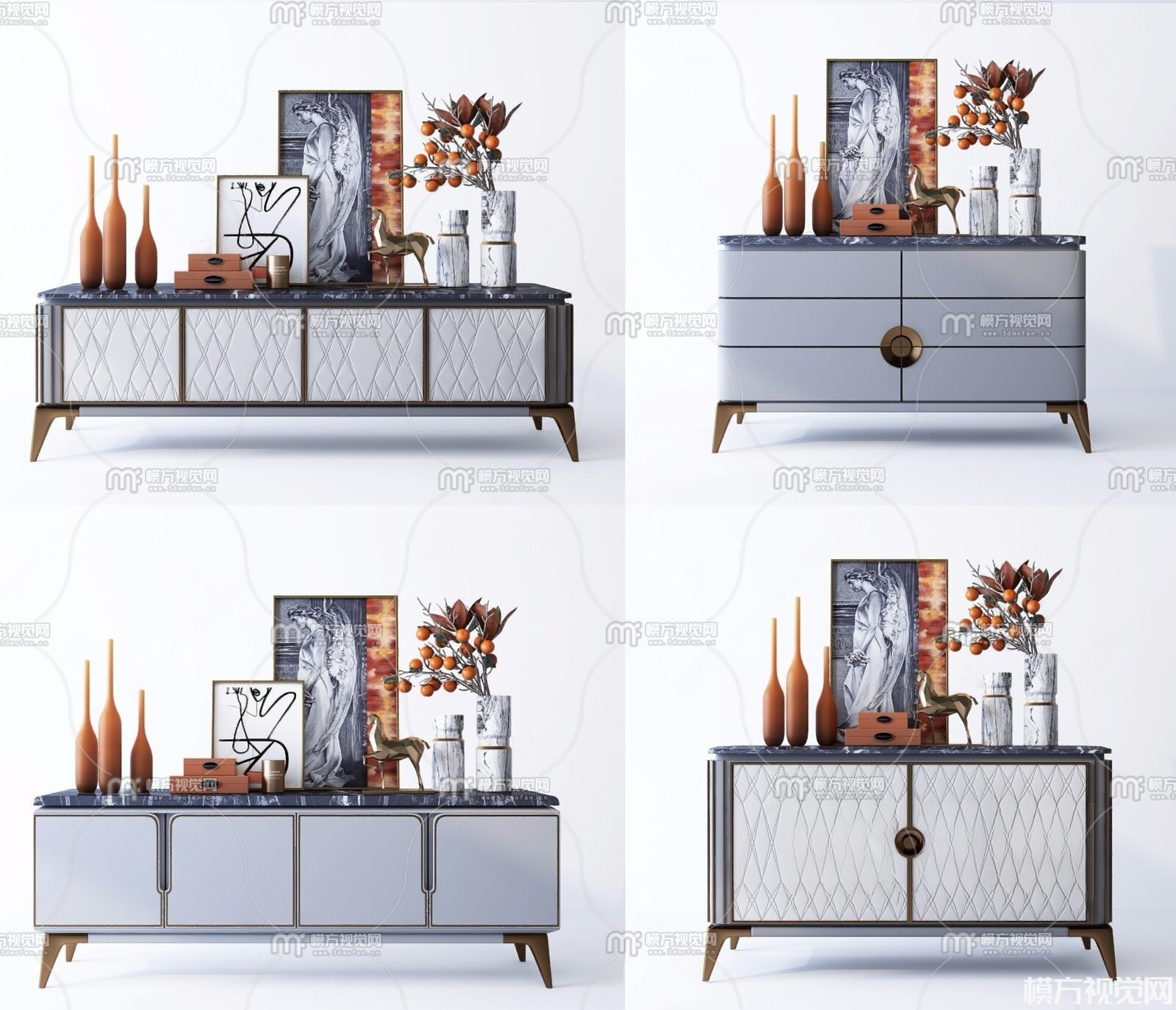 现代电视柜边柜饰品摆件组合3D模型(ID:0027118)