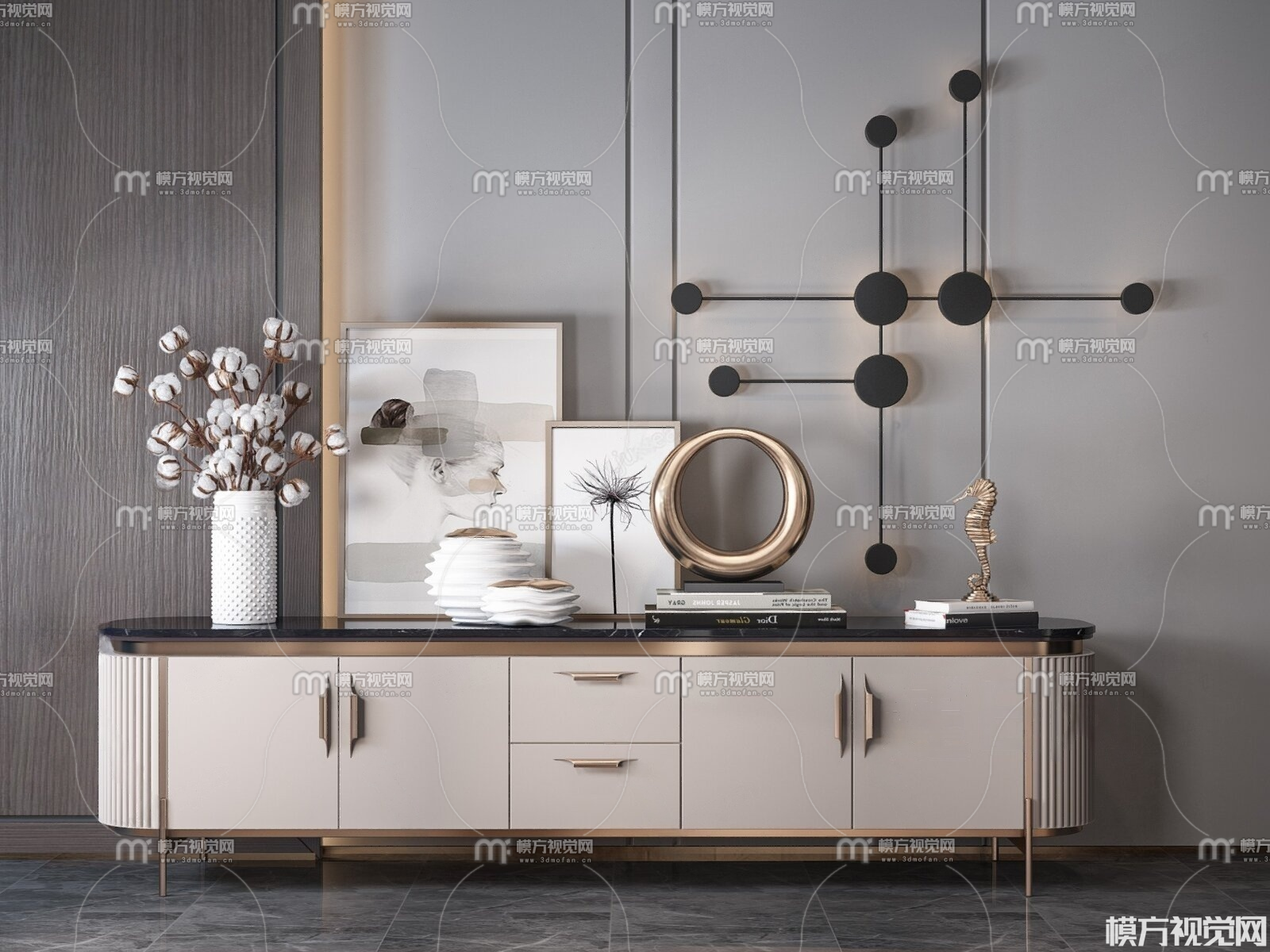现代轻奢电视柜摆件组合3D模型(ID:0027140)