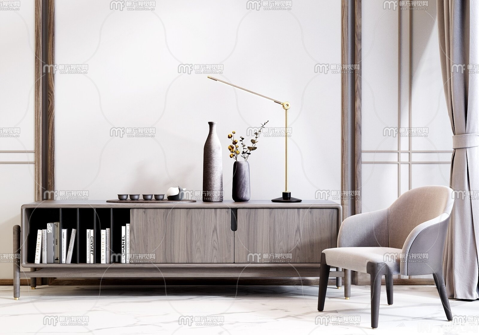 新中式电视柜 休闲椅组合3D模型(ID:0027164)