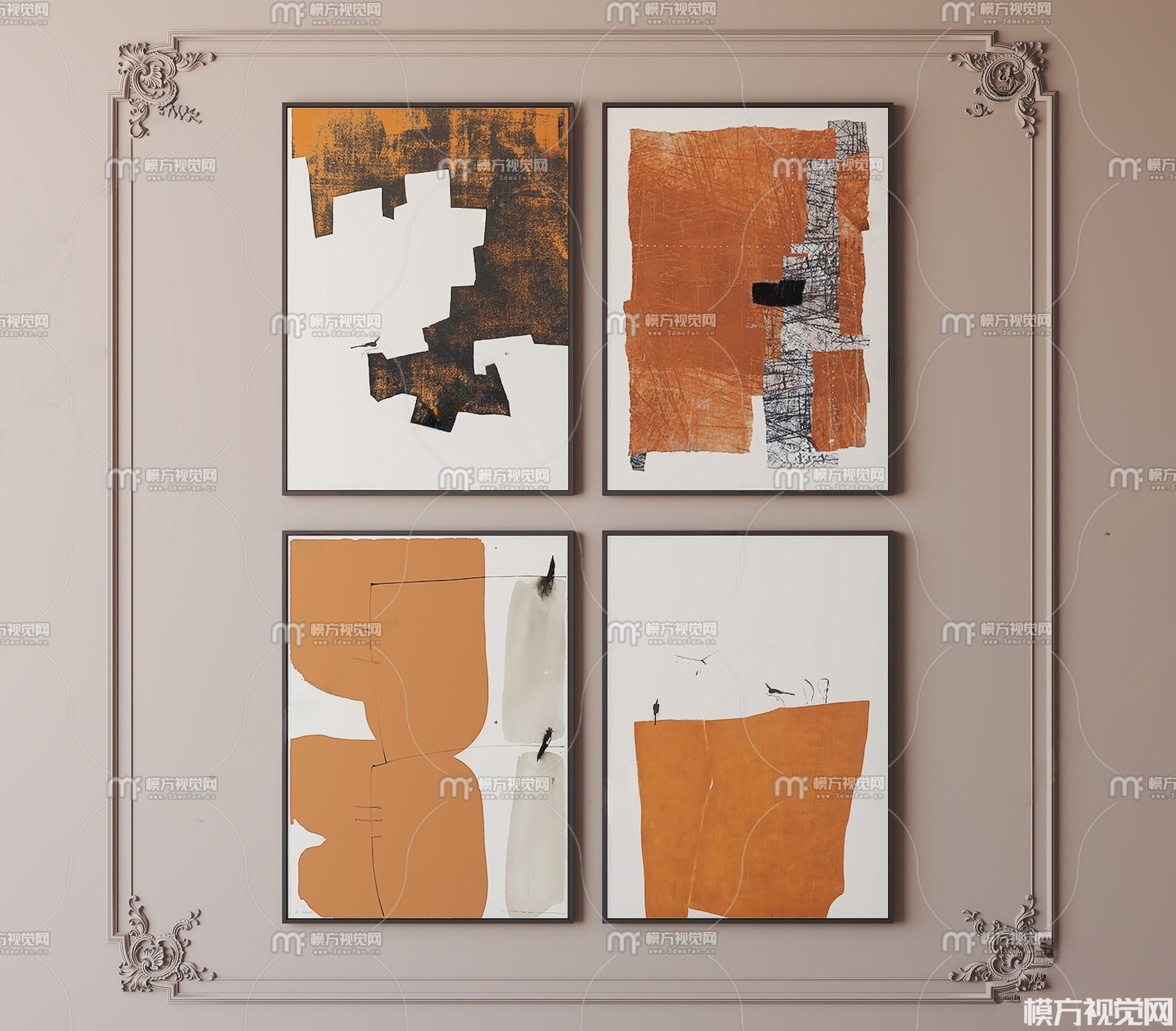 现代装饰画组合3D模型(ID:0027195)