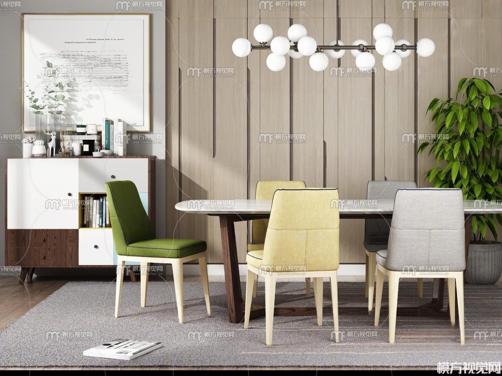 北欧餐桌椅组合3D模型(ID:0027214)