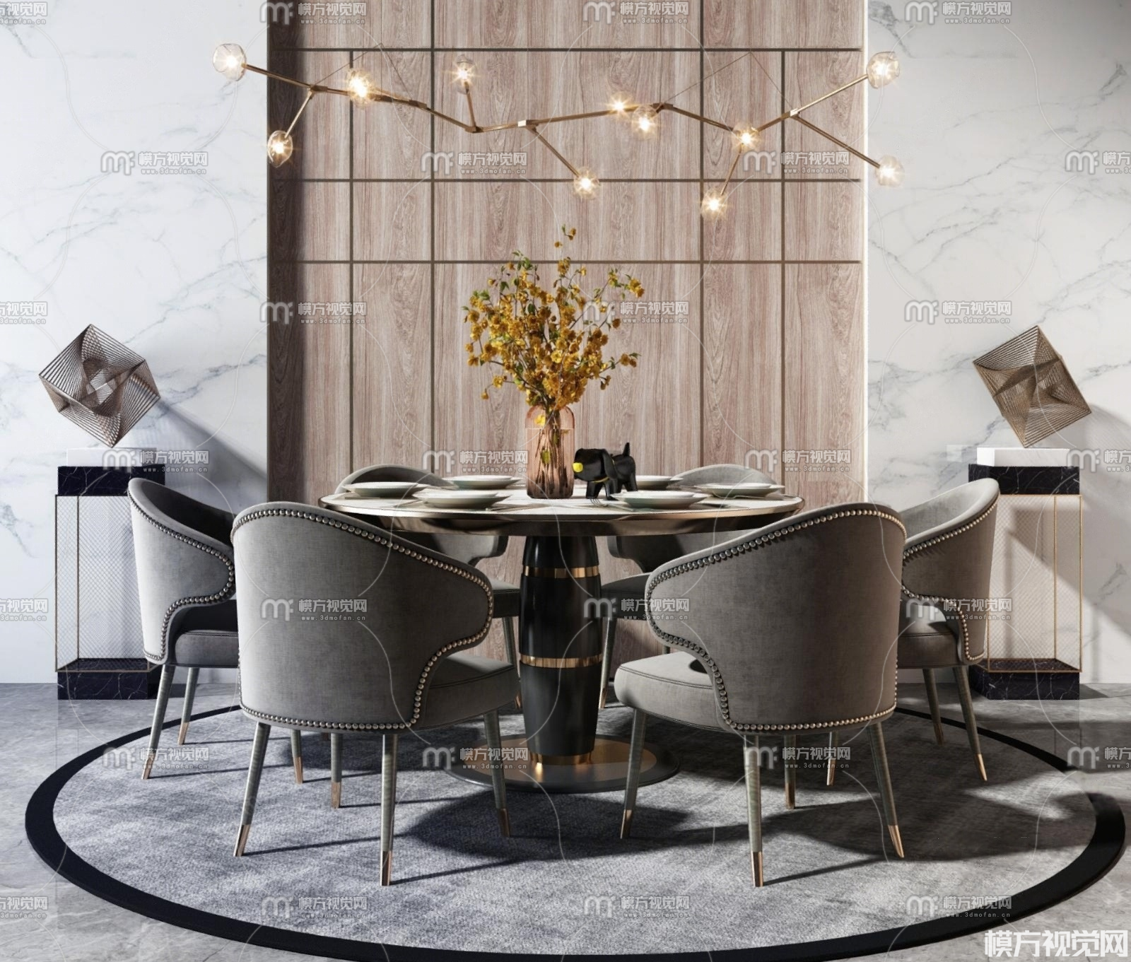 现代圆形餐桌椅组合3D模型(ID:0027228)