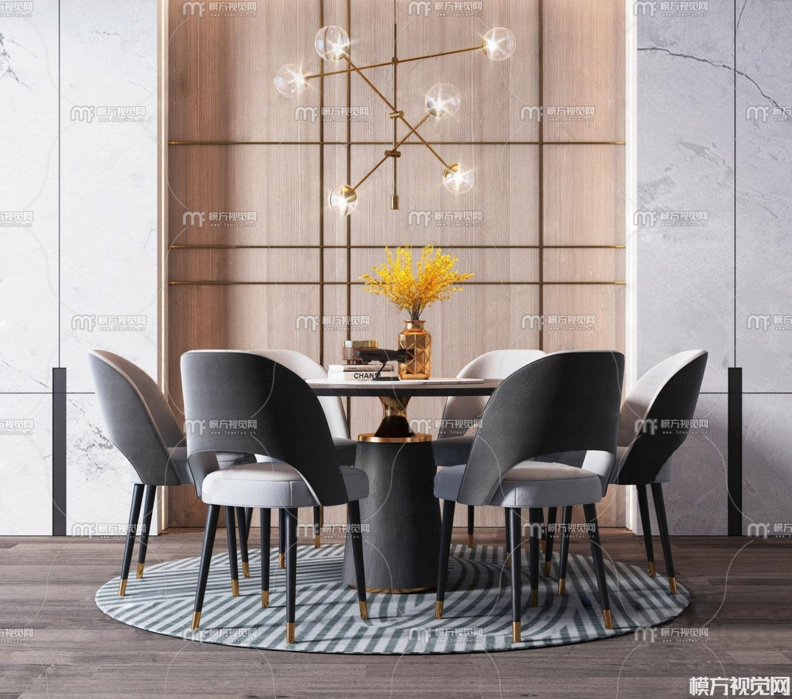 现代圆形餐桌椅组合3D模型(ID:0027242)