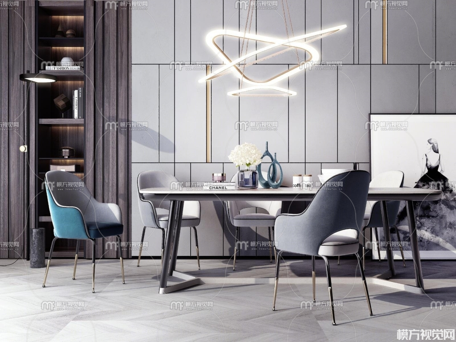 现代餐桌椅组合3D模型(ID:0027244)