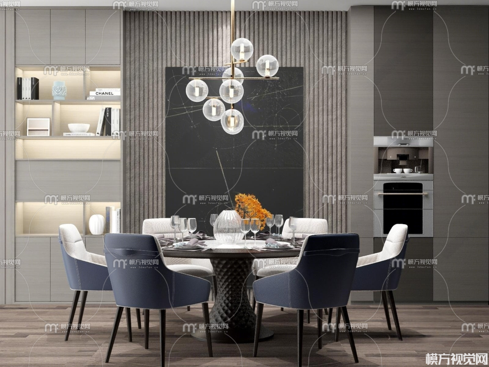 现代圆形餐桌椅组合3D模型(ID:0027249)