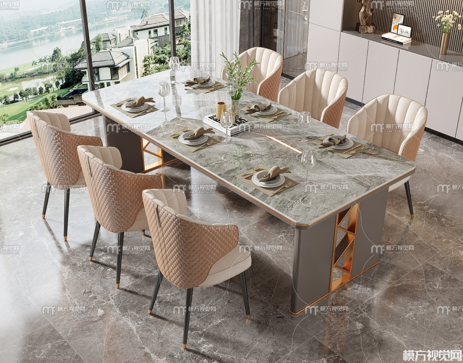现代轻奢大理石餐桌椅组合3D模型(ID:0027273)
