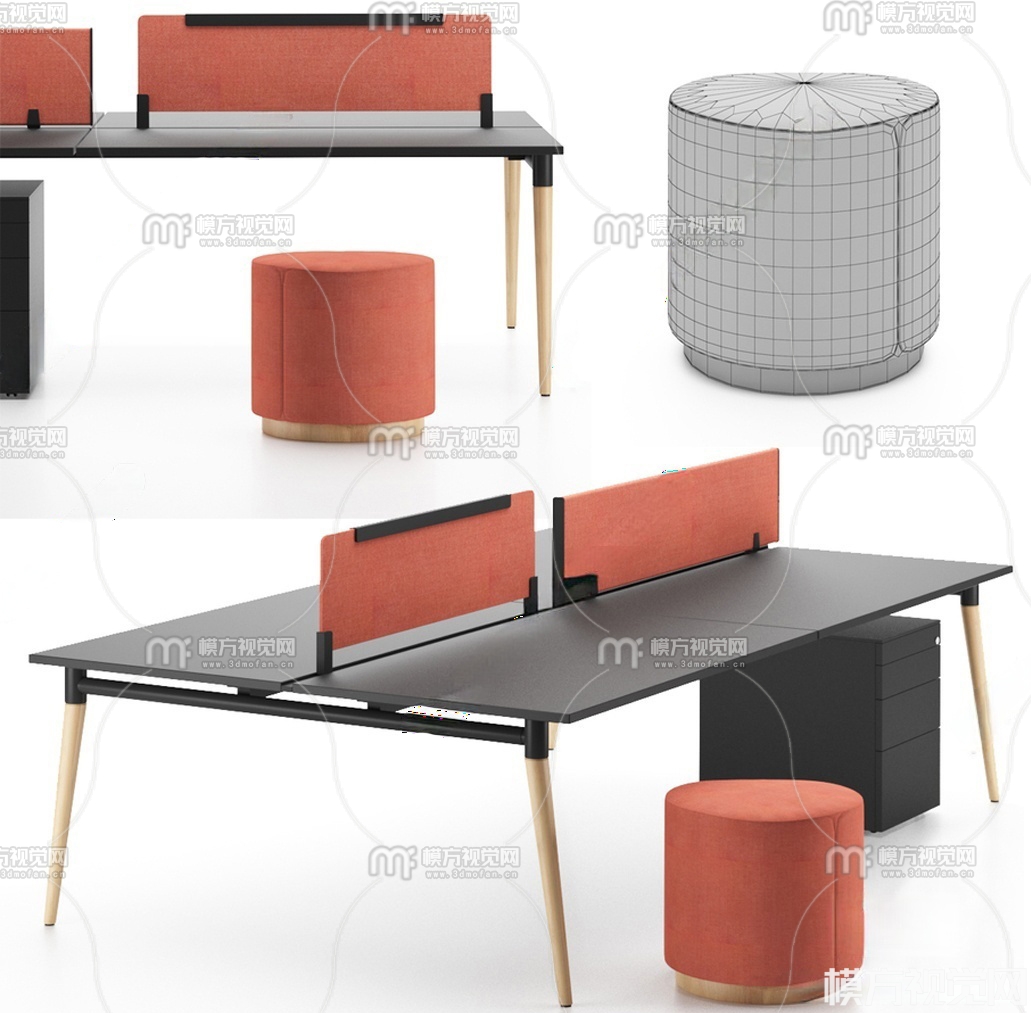 现代卡位办公桌3D模型(ID:0027315)