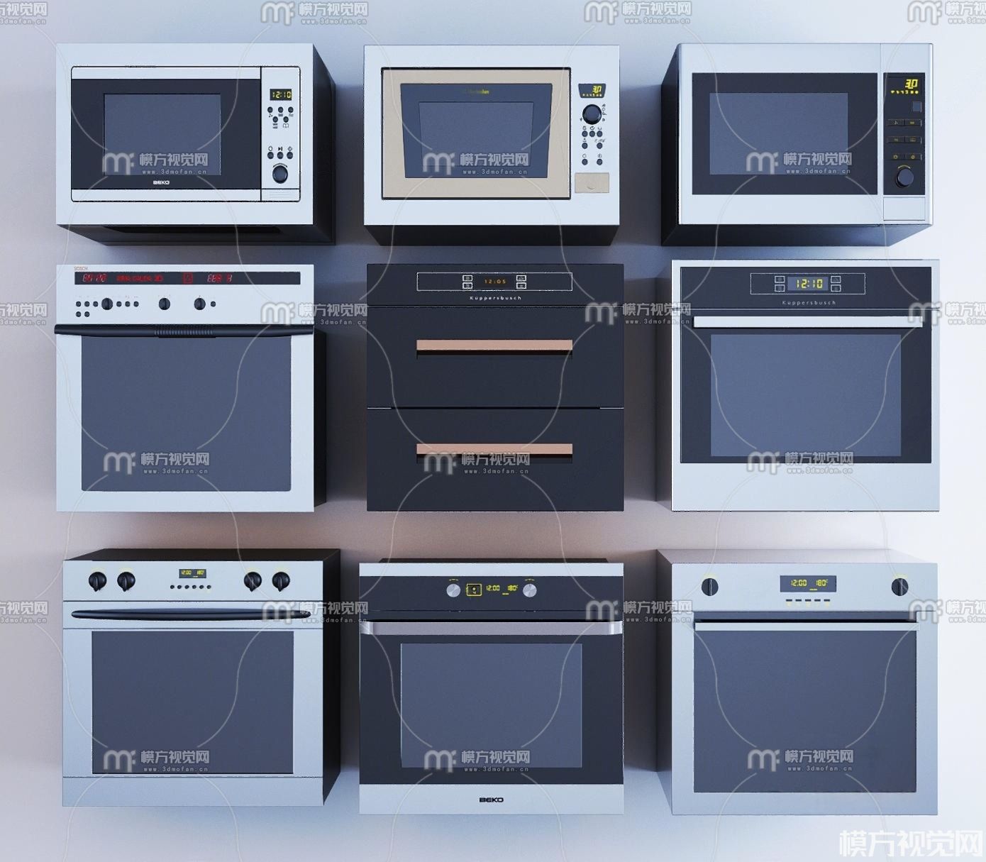 现代烤箱微波炉组合电器3D模型(ID:0027360)