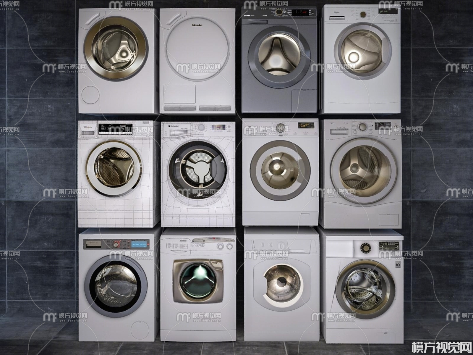 现代洗衣机组合3D模型(ID:0027383)