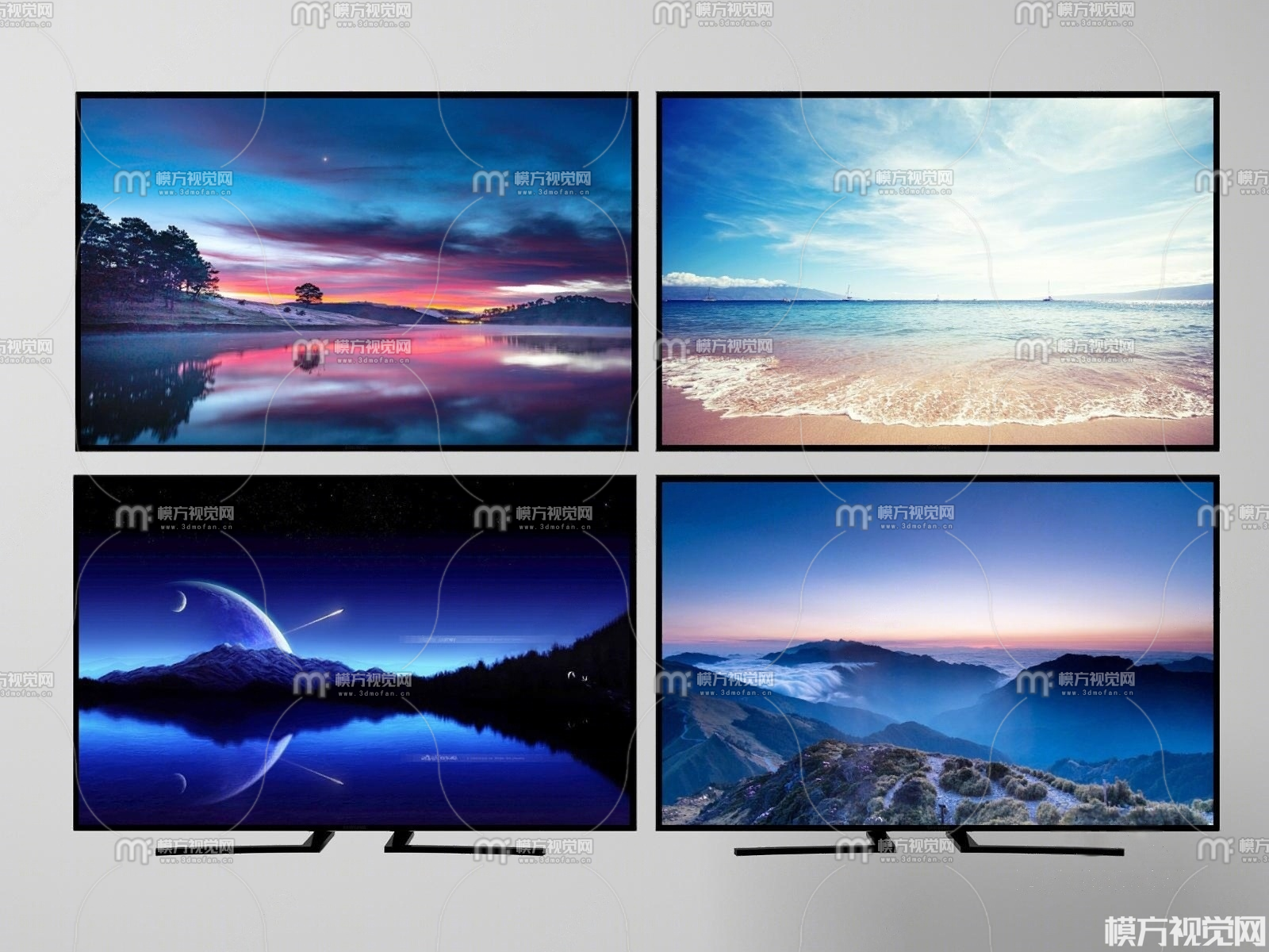 现代液晶电视机显示器组合3D模型(ID:0027387)