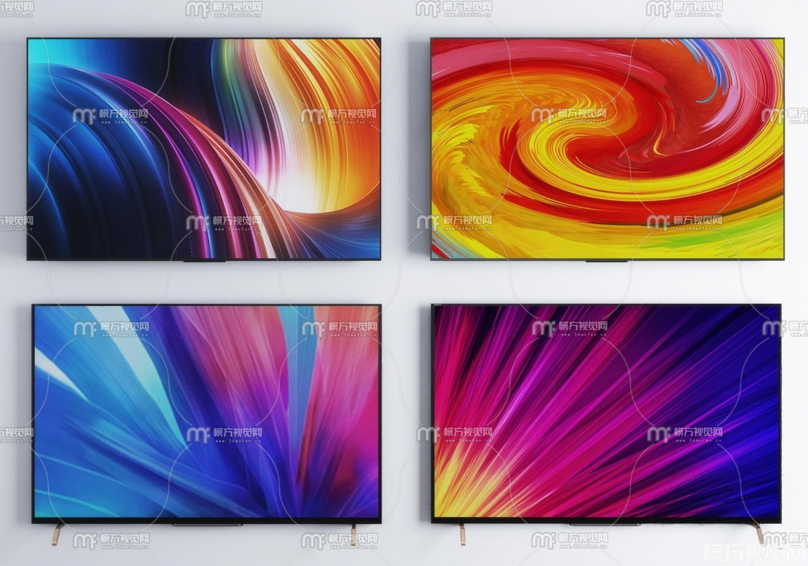 现代液晶电视机显示器组合3D模型(ID:0027388)