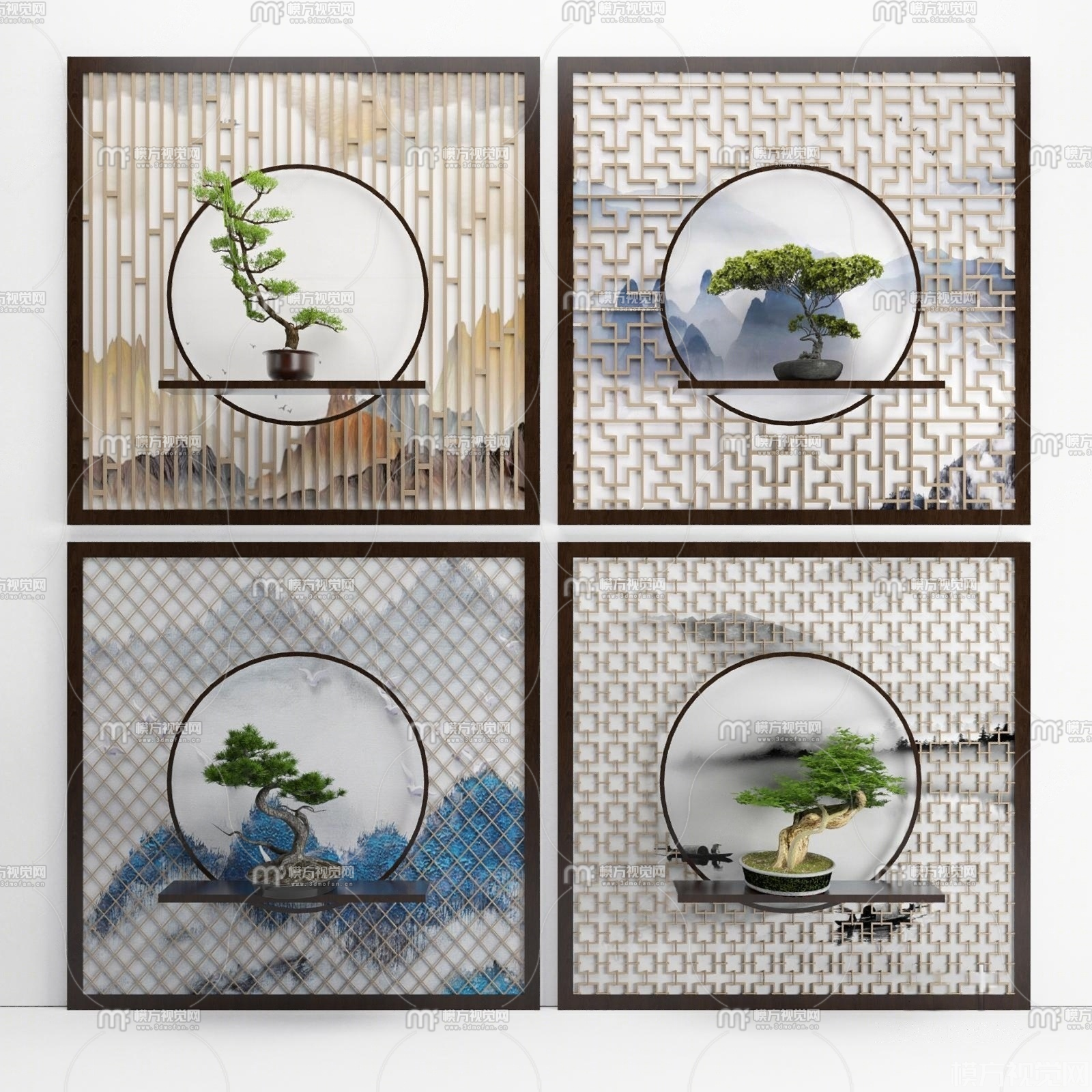 新中式屏风隔断端景台3D模型(ID:0027457)