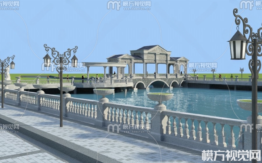 欧式户外人行桥 护栏3D3D模型(ID:0002746)