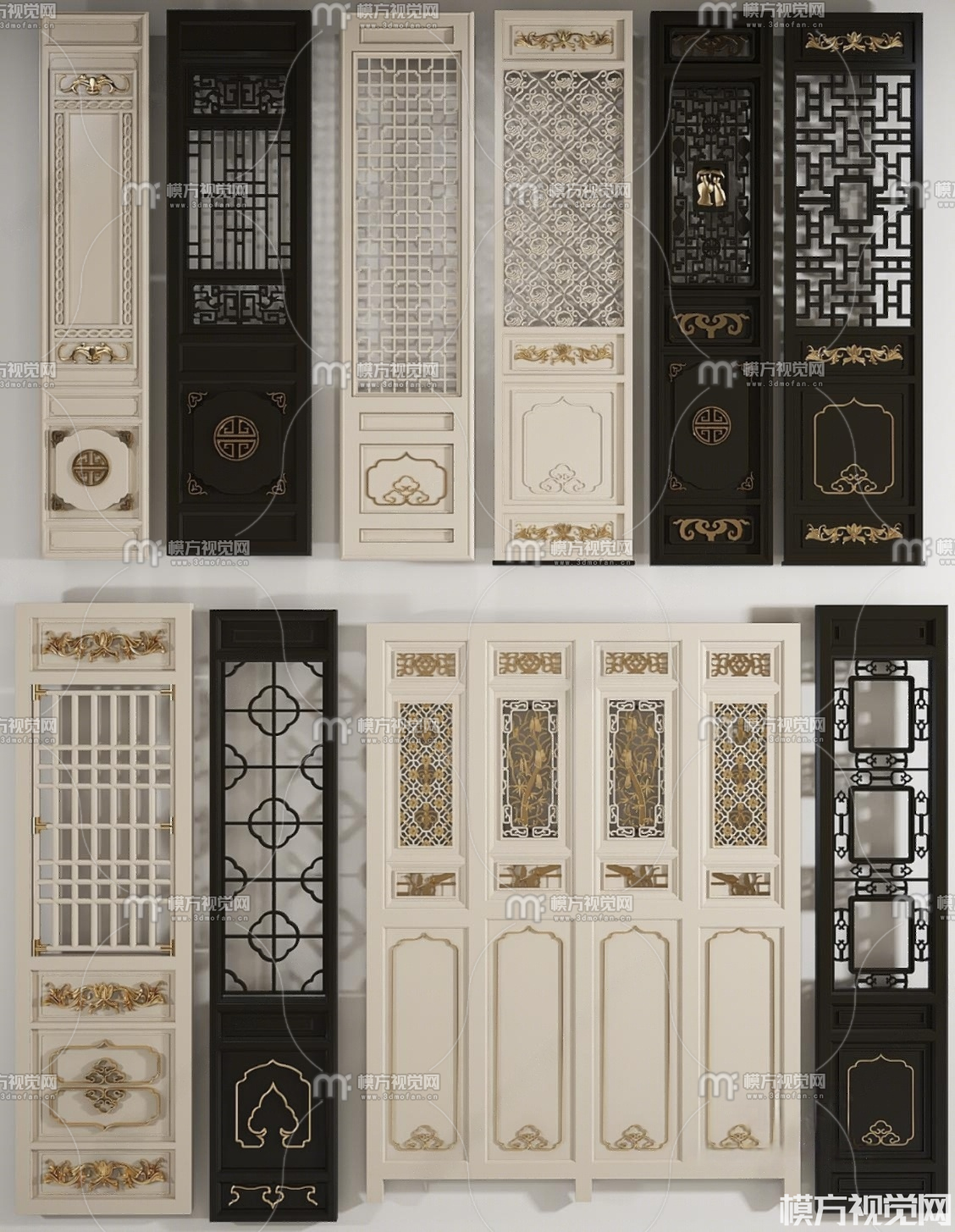 中式实木花格屏风门窗组合3D模型(ID:0027466)