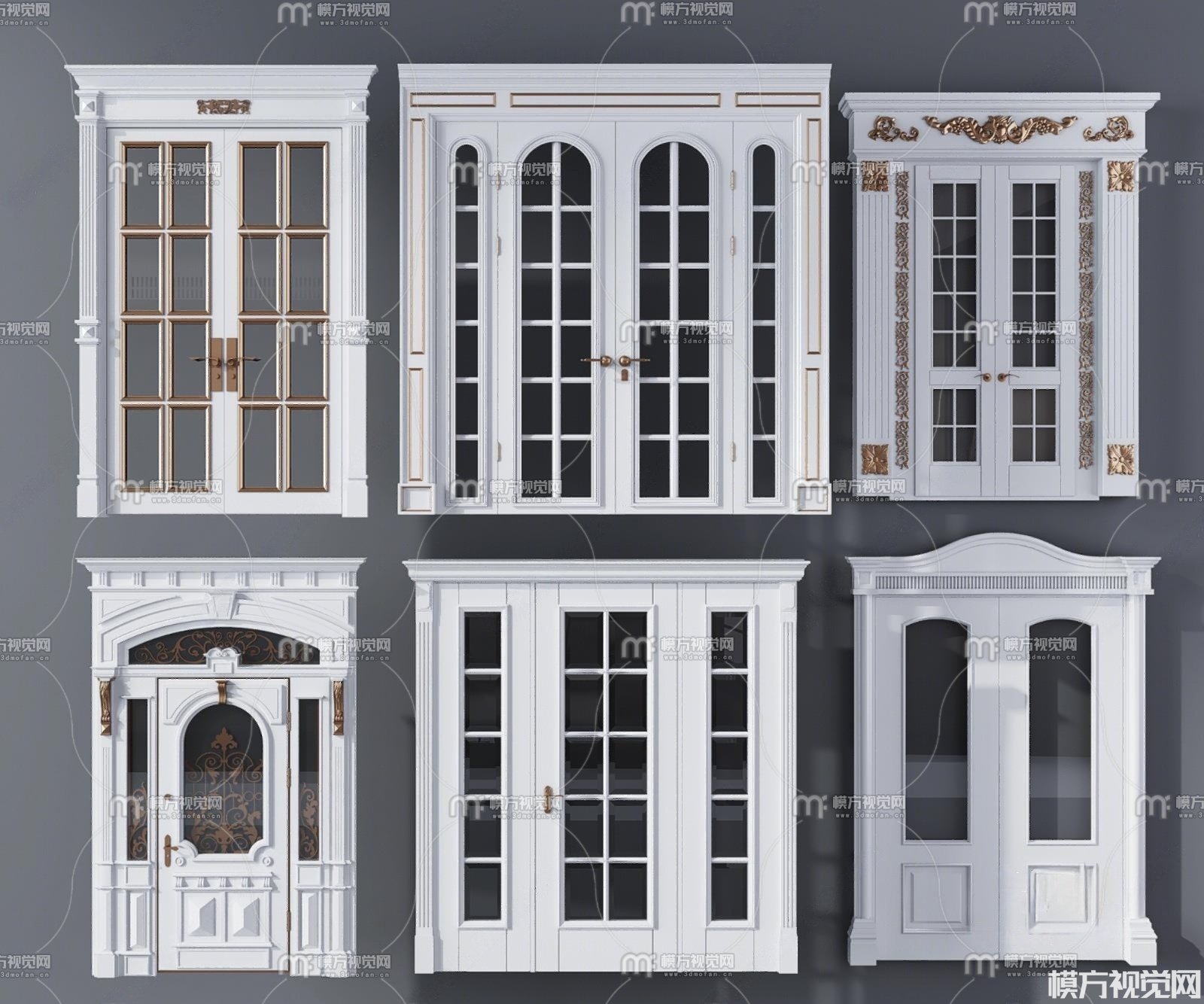 简欧玻璃双开大门3D模型(ID:0027491)