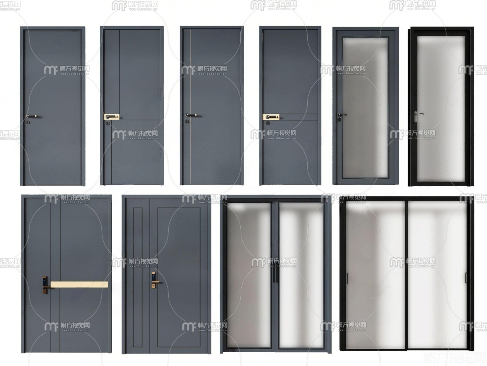 现代单开门 推拉门组合3D模型(ID:0027502)