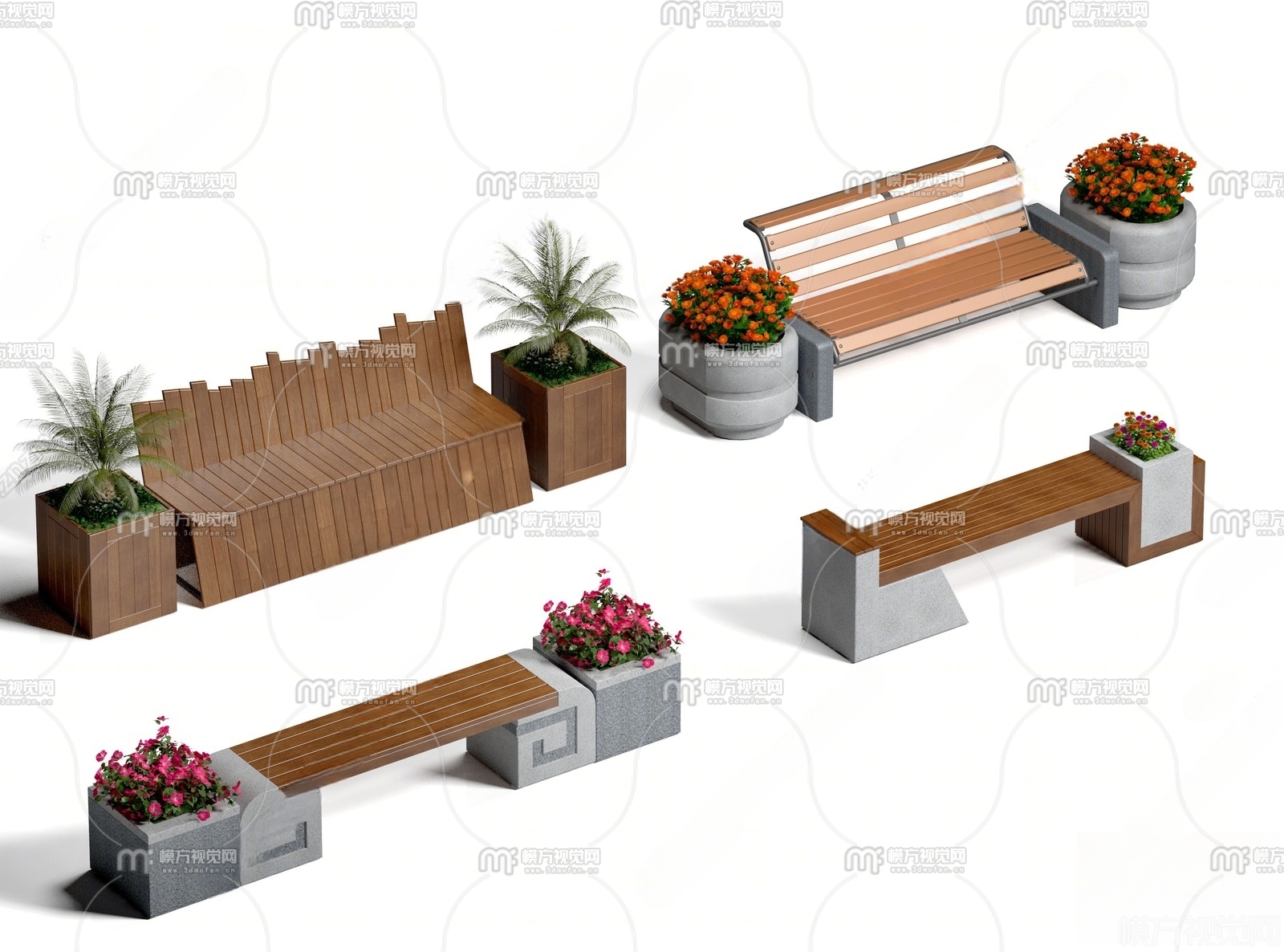 户外公共座椅花坛组合3D模型(ID:0002763)