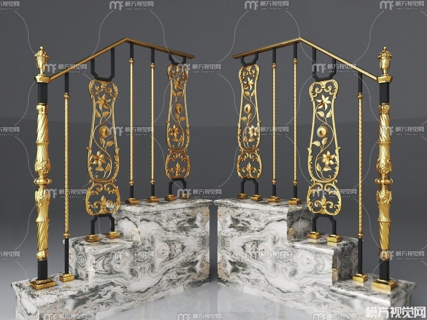 金属雕花楼梯栏杆3D模型(ID:0027800)