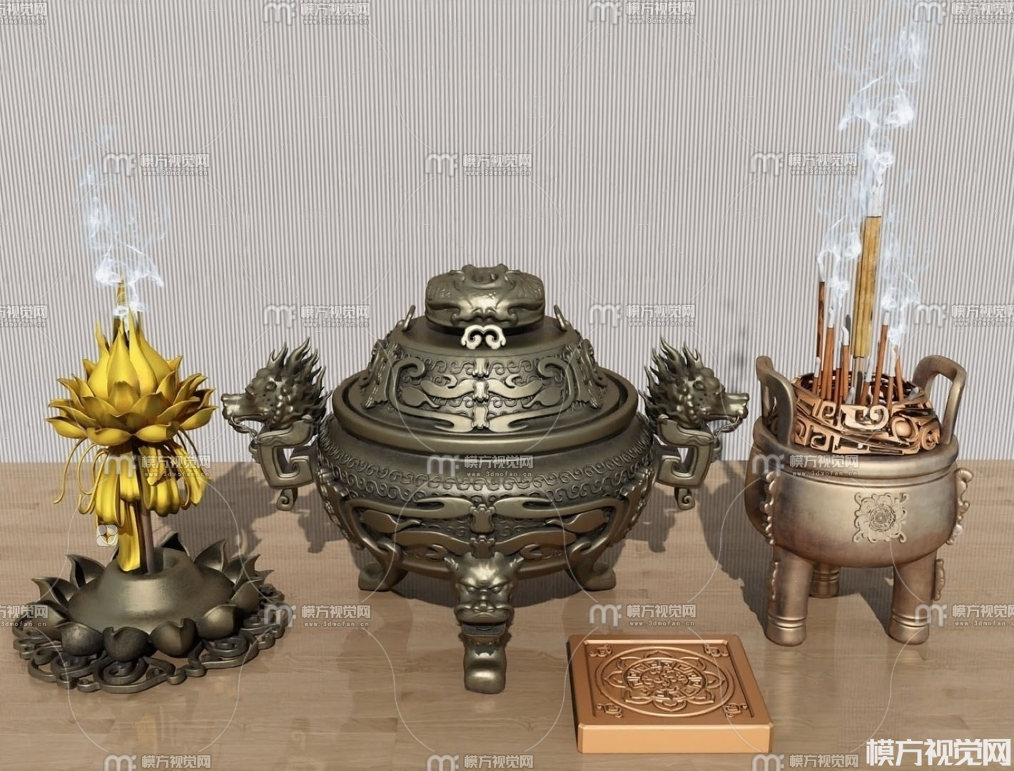 中式香炉 青铜鼎3D模型(ID:0027825)