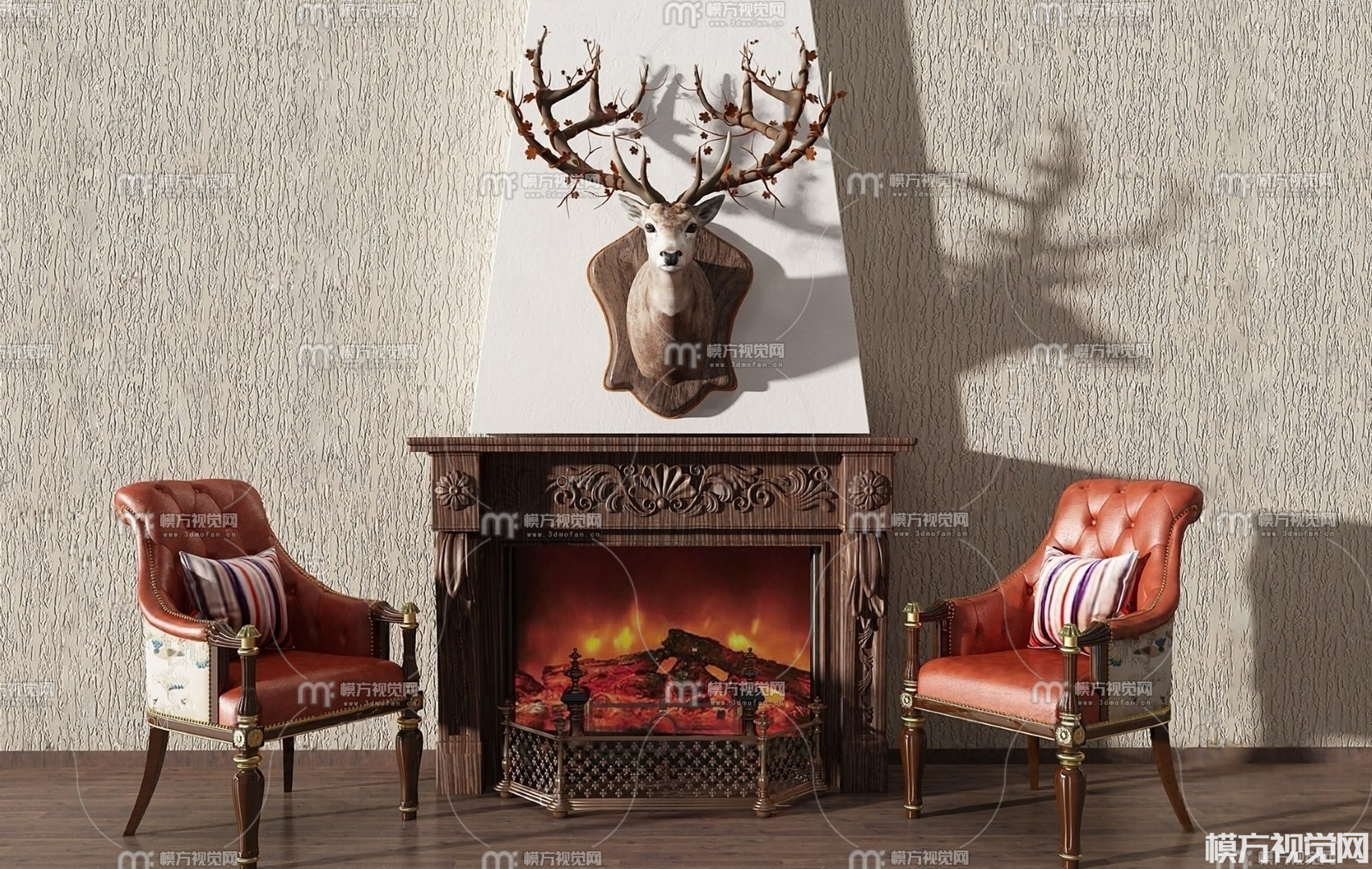 美式休闲沙发 壁炉3D模型(ID:0027844)