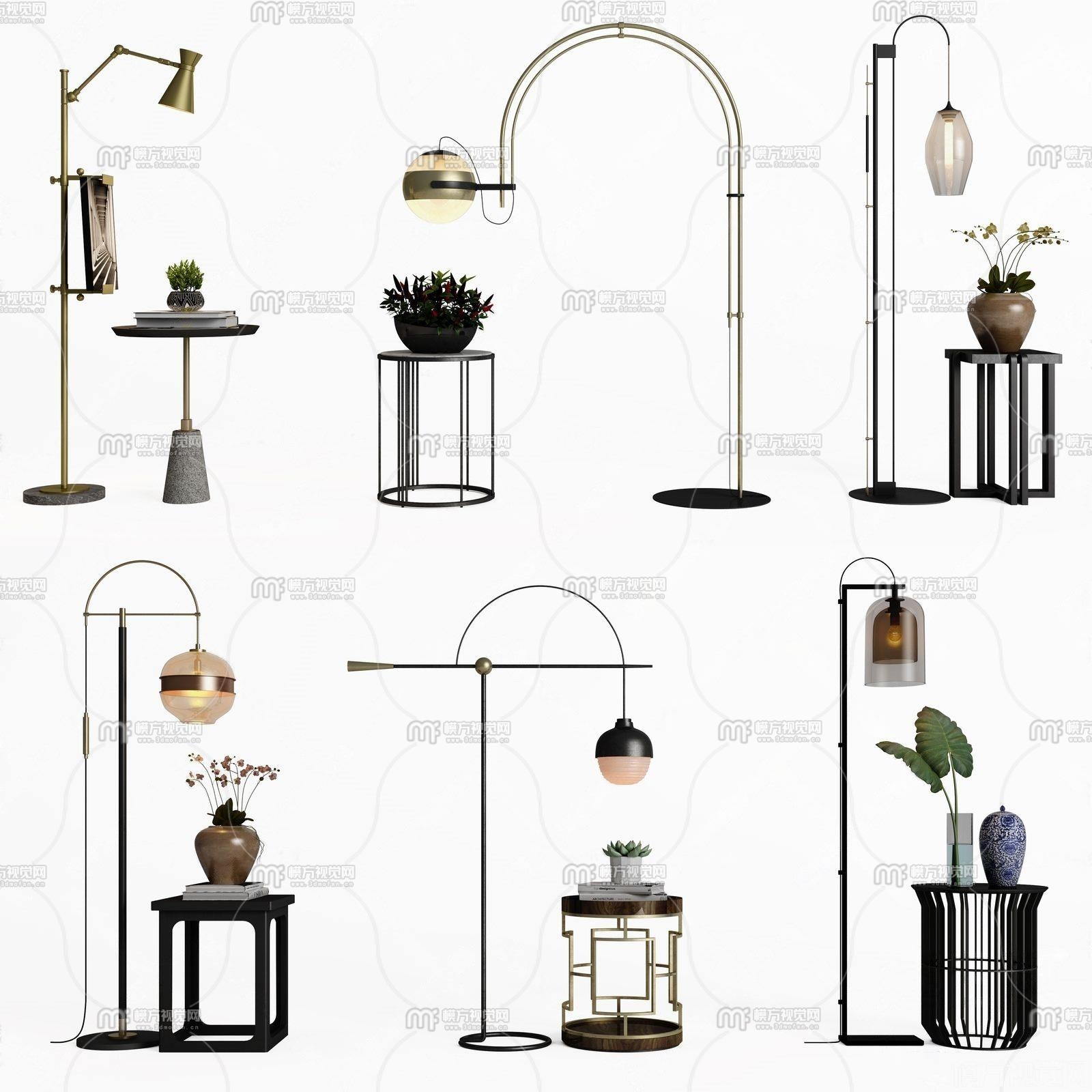 新中式落地灯边几组合3D模型(ID:0000279)