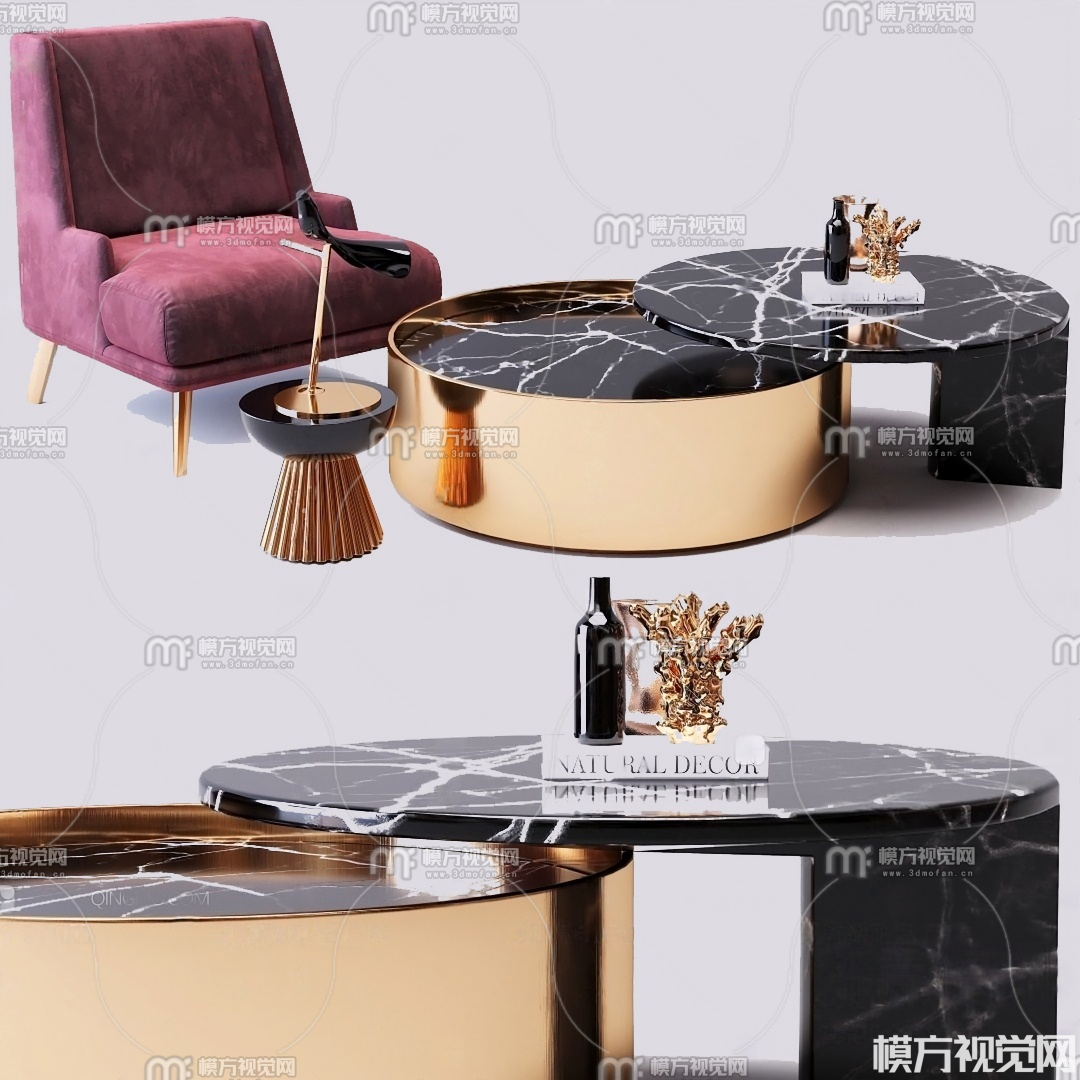 休闲沙发 茶几组合3D模型(ID:0027923)
