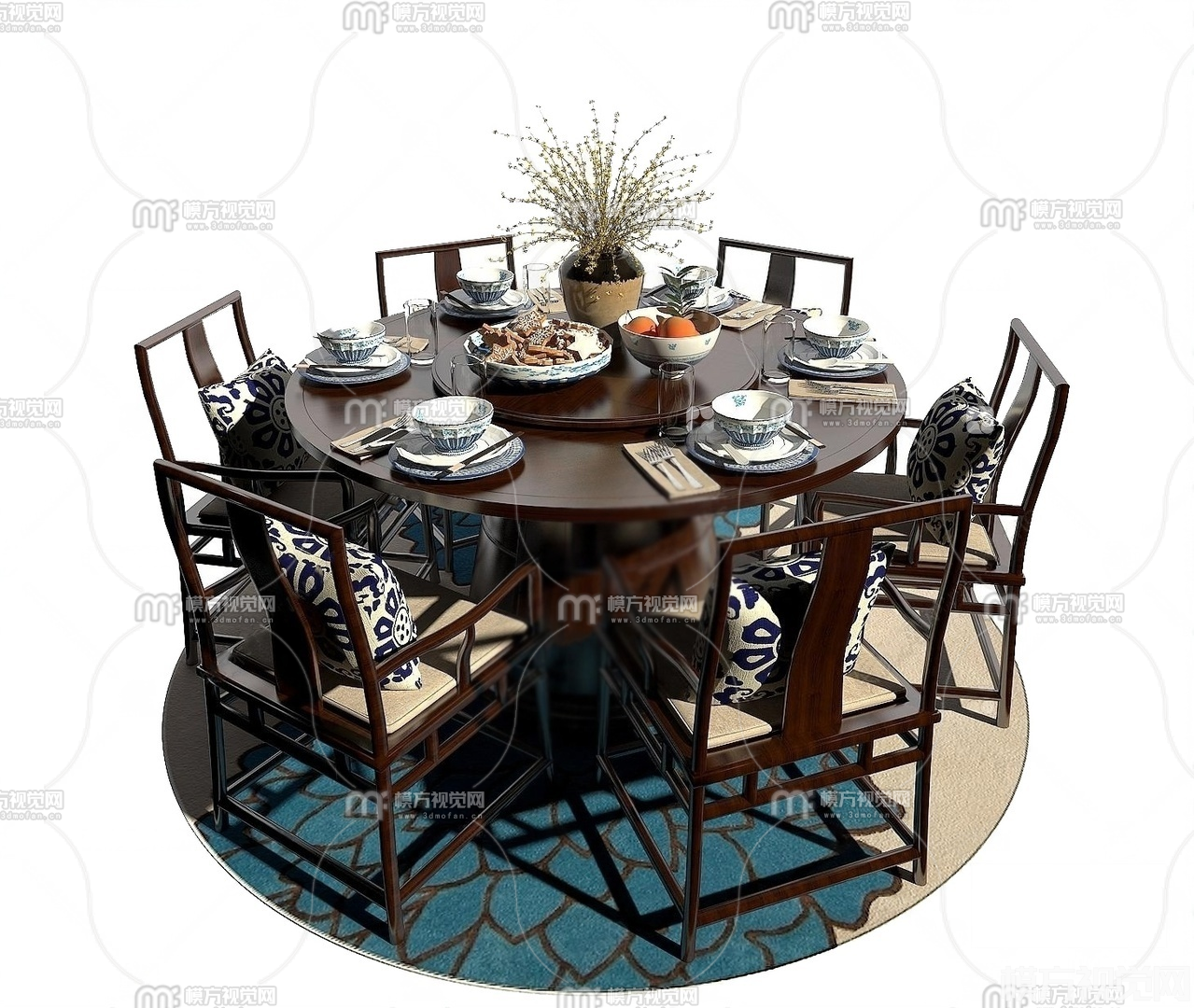 新中式圆形餐桌椅组合3D模型(ID:0027929)