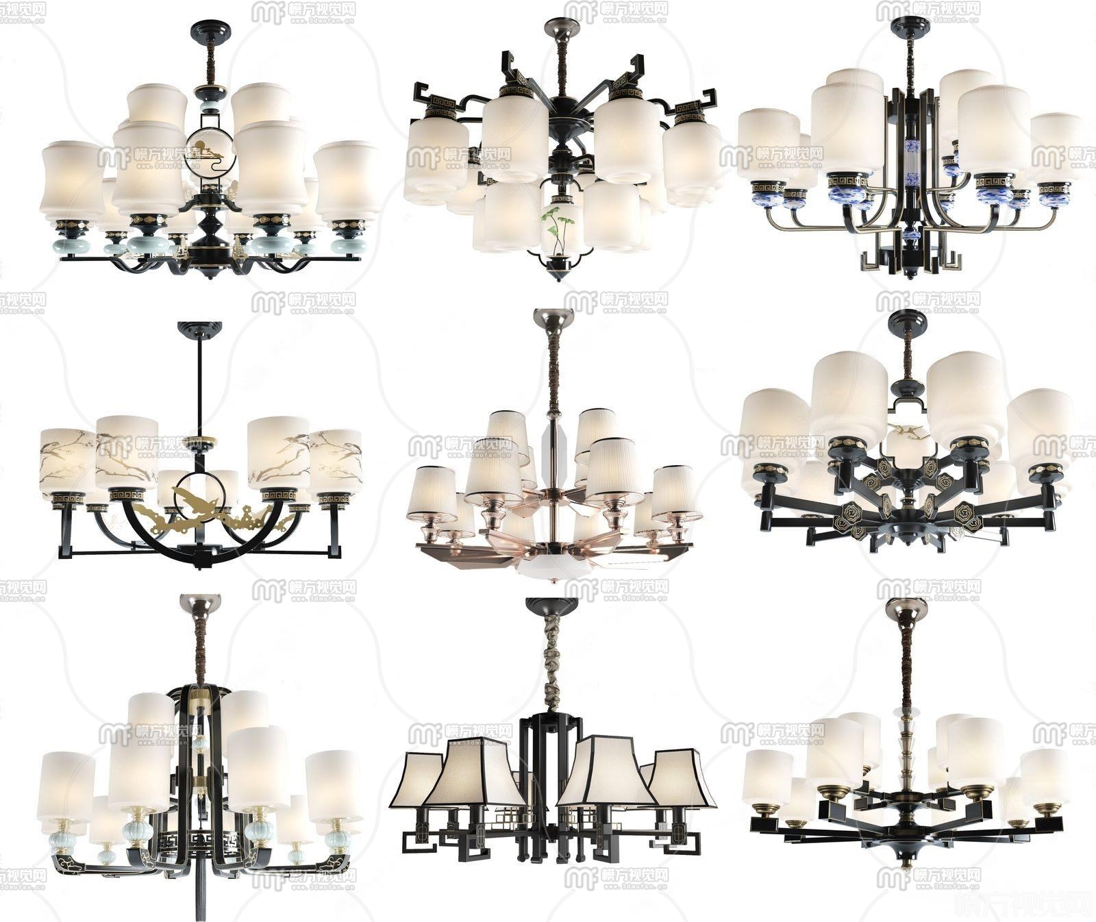 新中式奢华多头吊灯组合3D模型(ID:0000281)