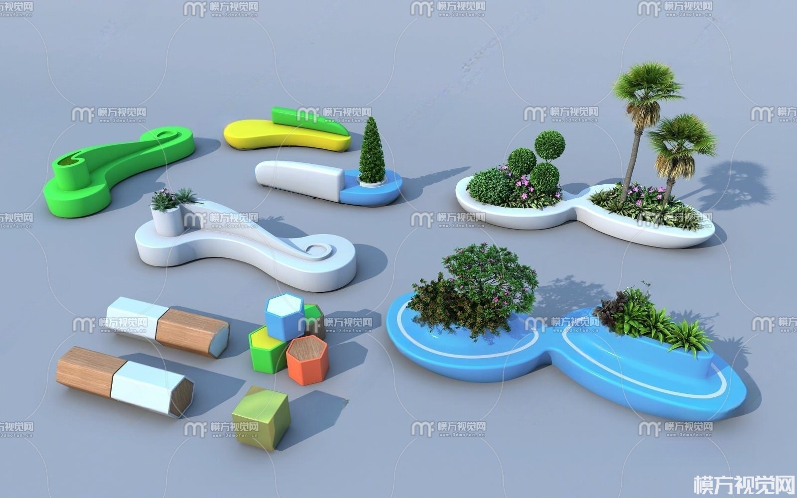 现代户外公园桌椅 花池3D模型(ID:0002817)