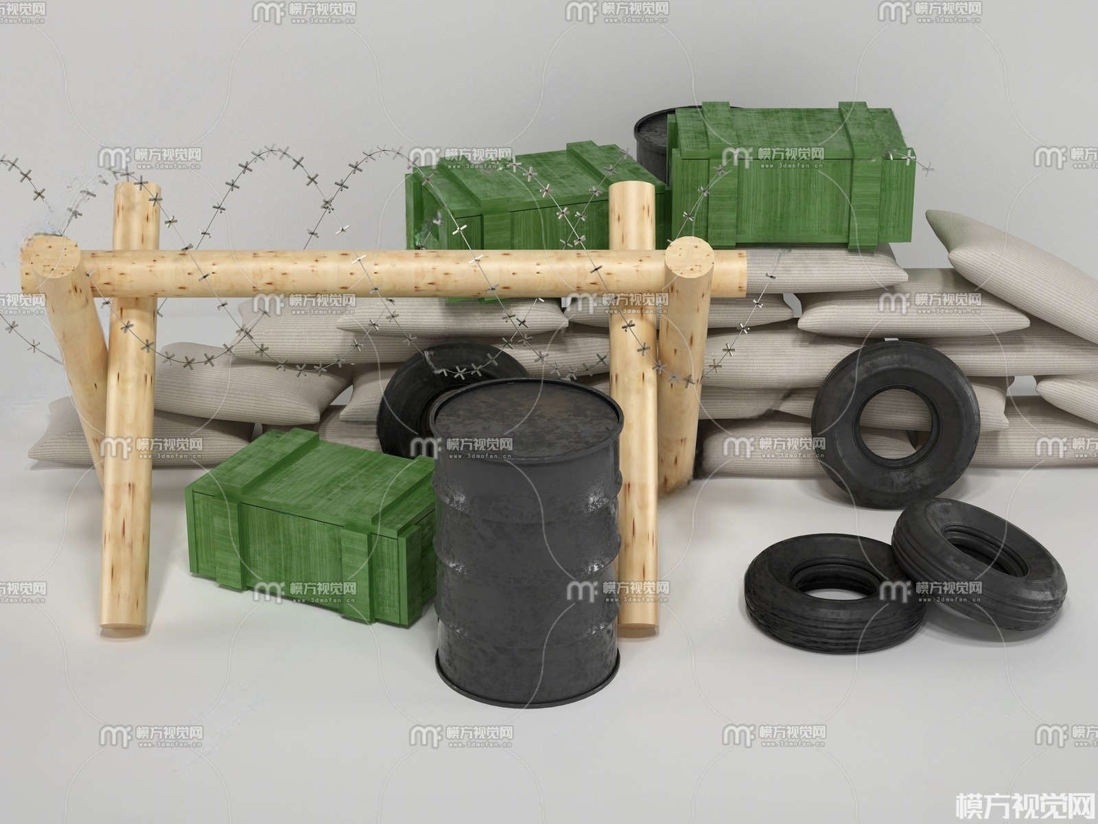 油桶 轮胎 沙袋3D模型(ID:0028279)