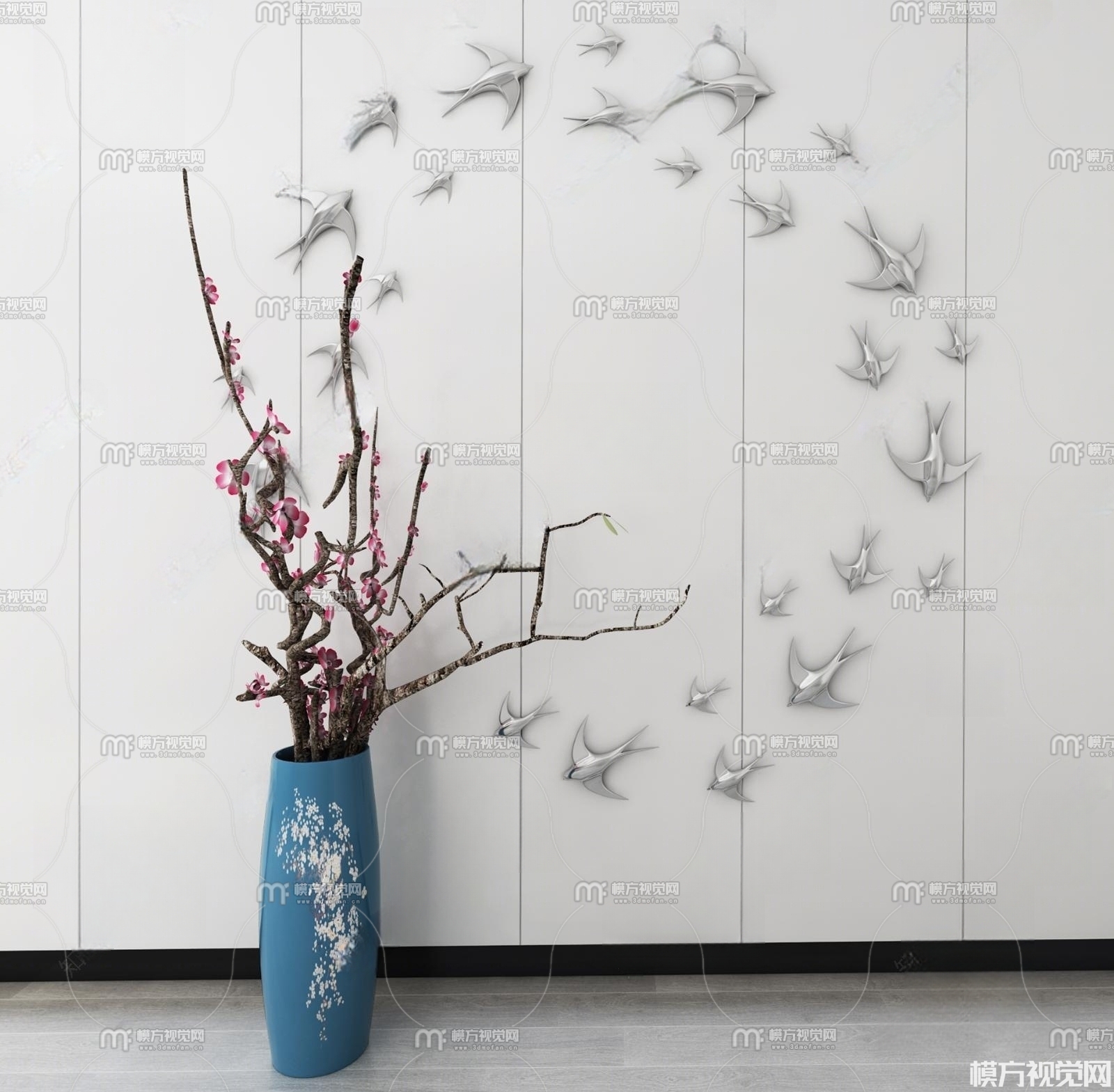 新中式花瓶花艺 墙饰3D模型(ID:0028304)