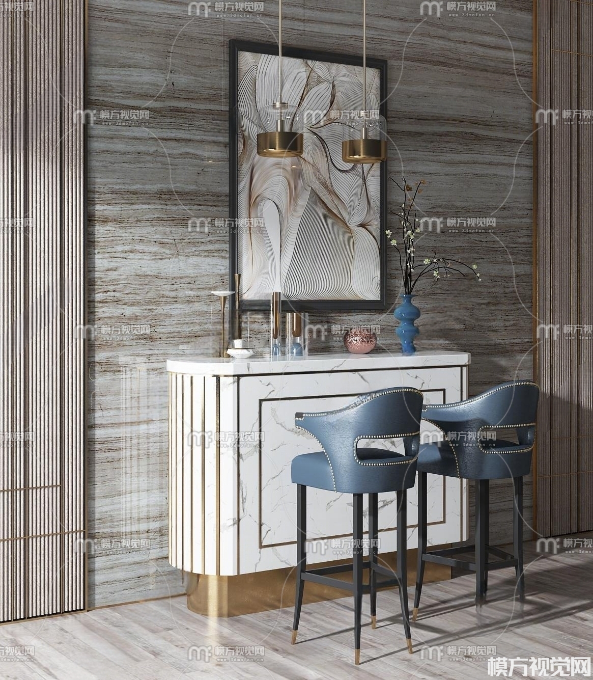 现代吧台 吧椅组合3D模型(ID:0028321)
