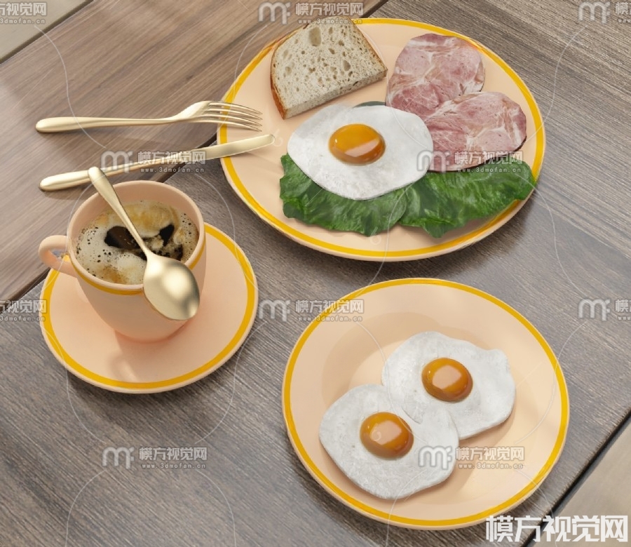 食物 荷包蛋 咖啡3D模型(ID:0028413)