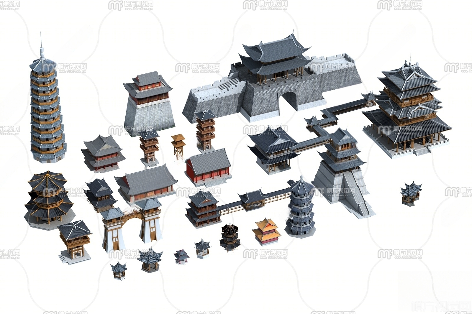 古建 城门 宝塔 佛塔3D模型(ID:0028528)