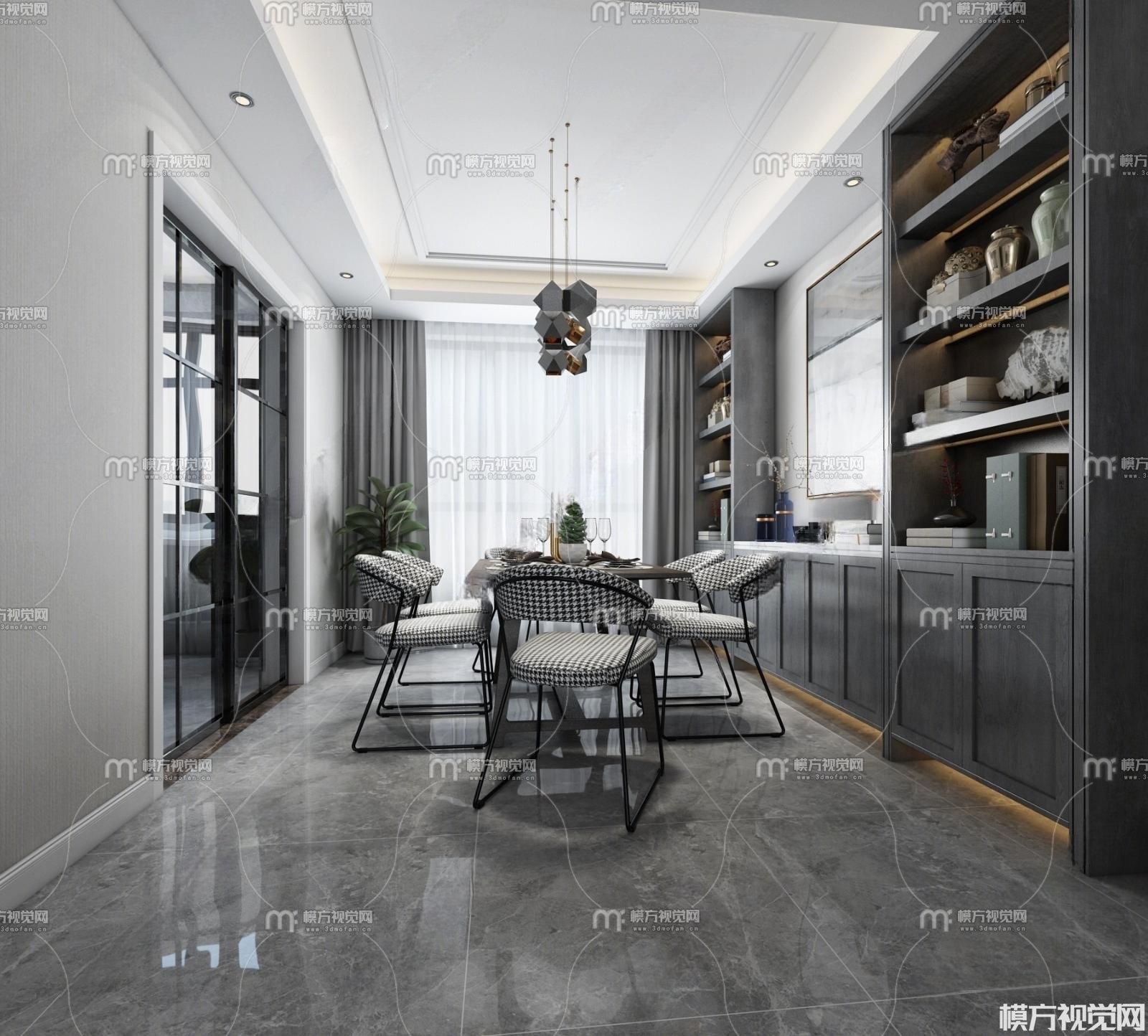现代黑白灰客餐厅3D模型(ID:0028542)
