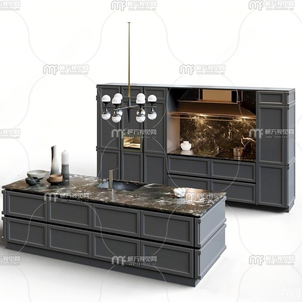 现代橱柜 岛台3D模型(ID:0028613)