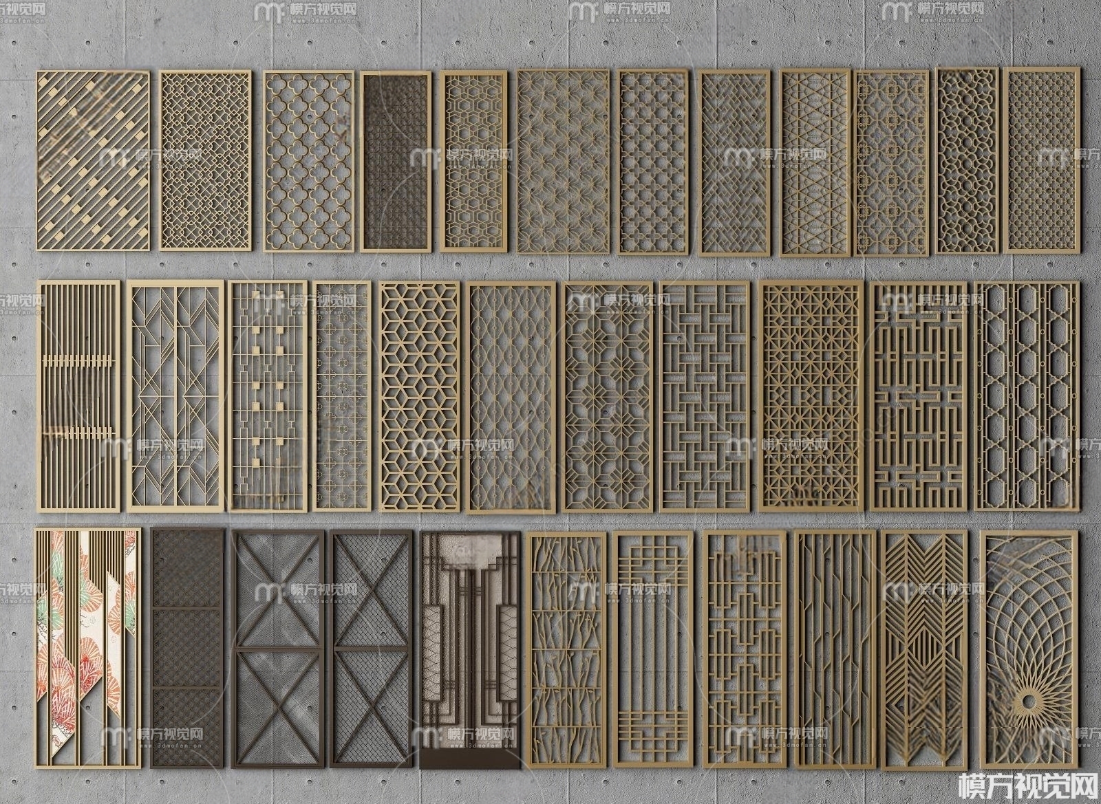 现代金属屏风 雕花 隔断3D模型(ID:0028697)