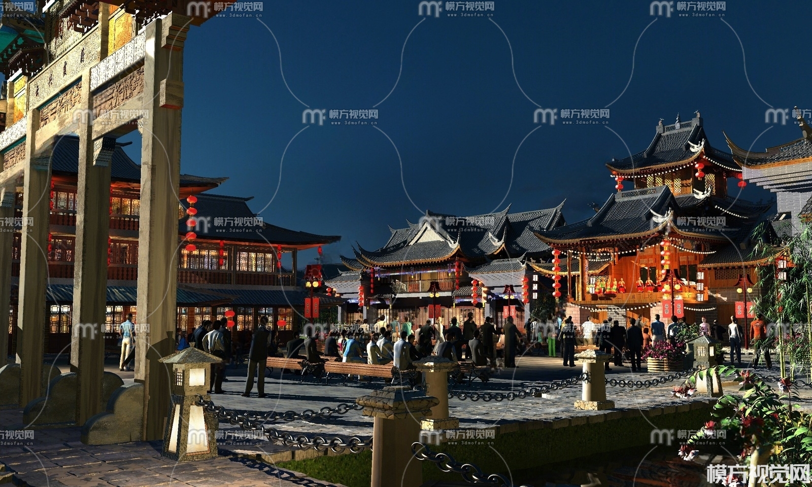 中式古建 戏台 商业街3D模型(ID:0028977)