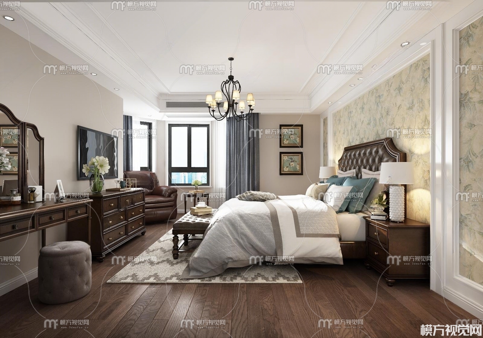 美式卧室3D模型(ID:0028989)