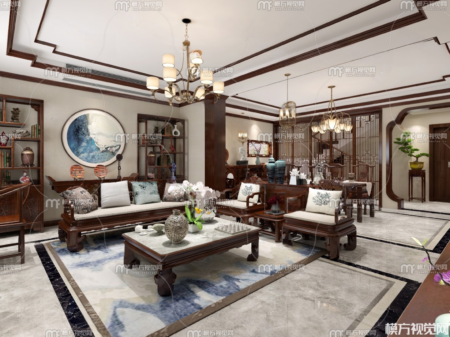 新中式客厅3D模型(ID:0002919)