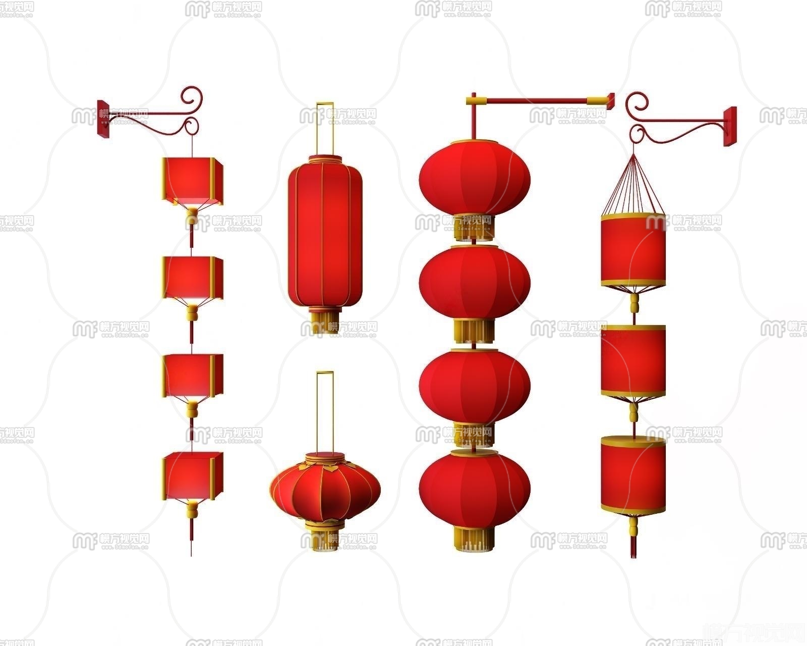 中式红灯笼装饰灯组合3d模型(ID:0000292)