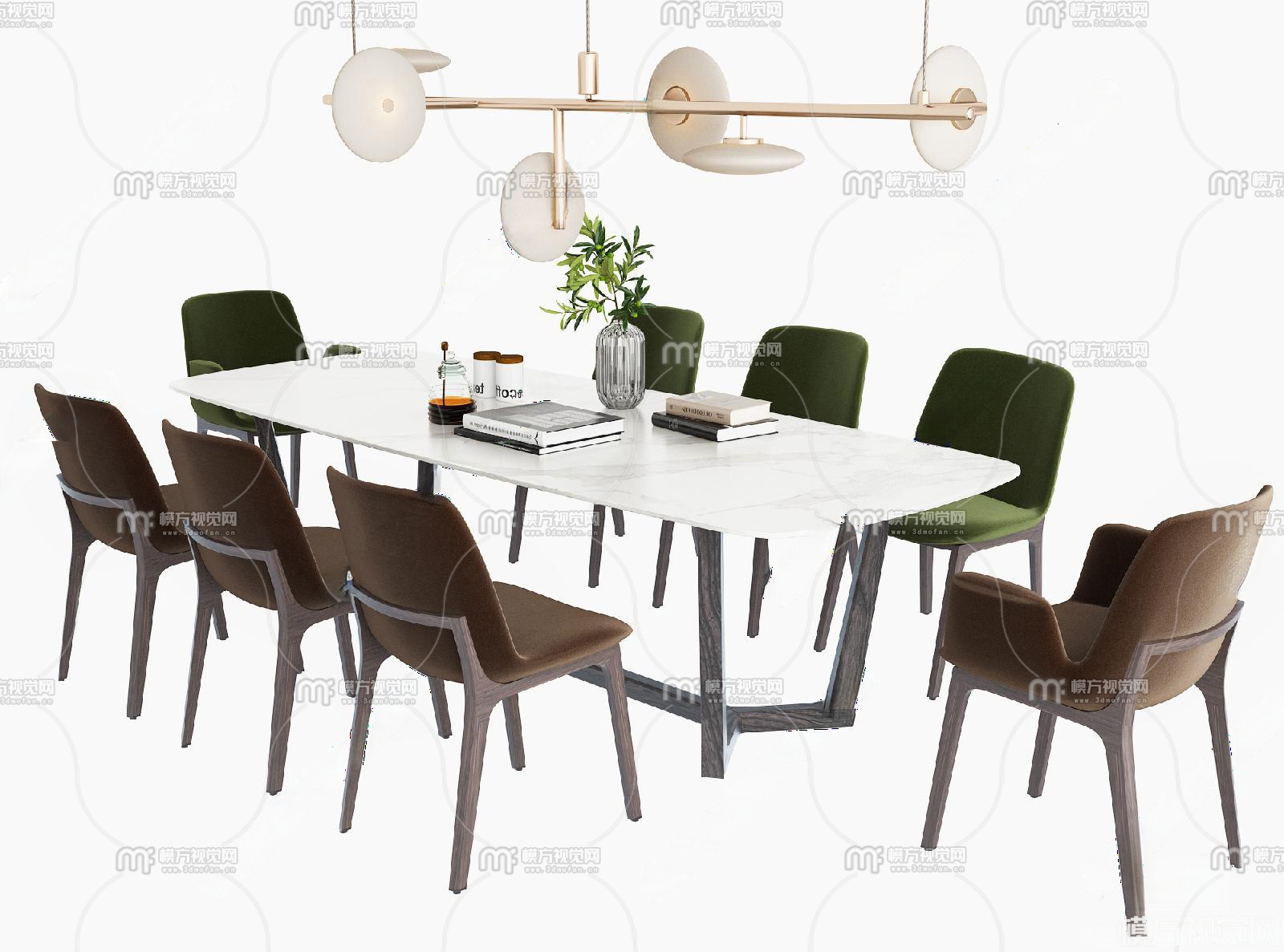 现代餐桌椅 吊灯3D模型(ID:0029484)