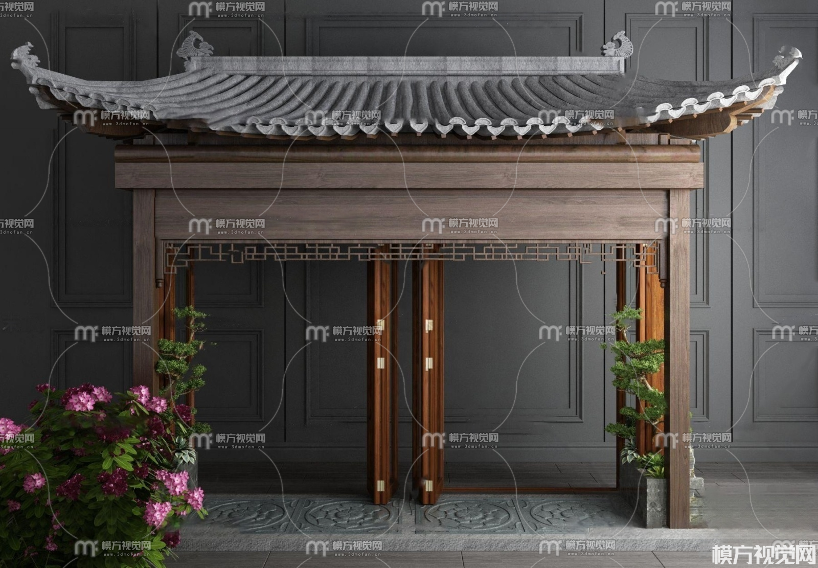 新中式屋檐 门头3D模型(ID:0029580)