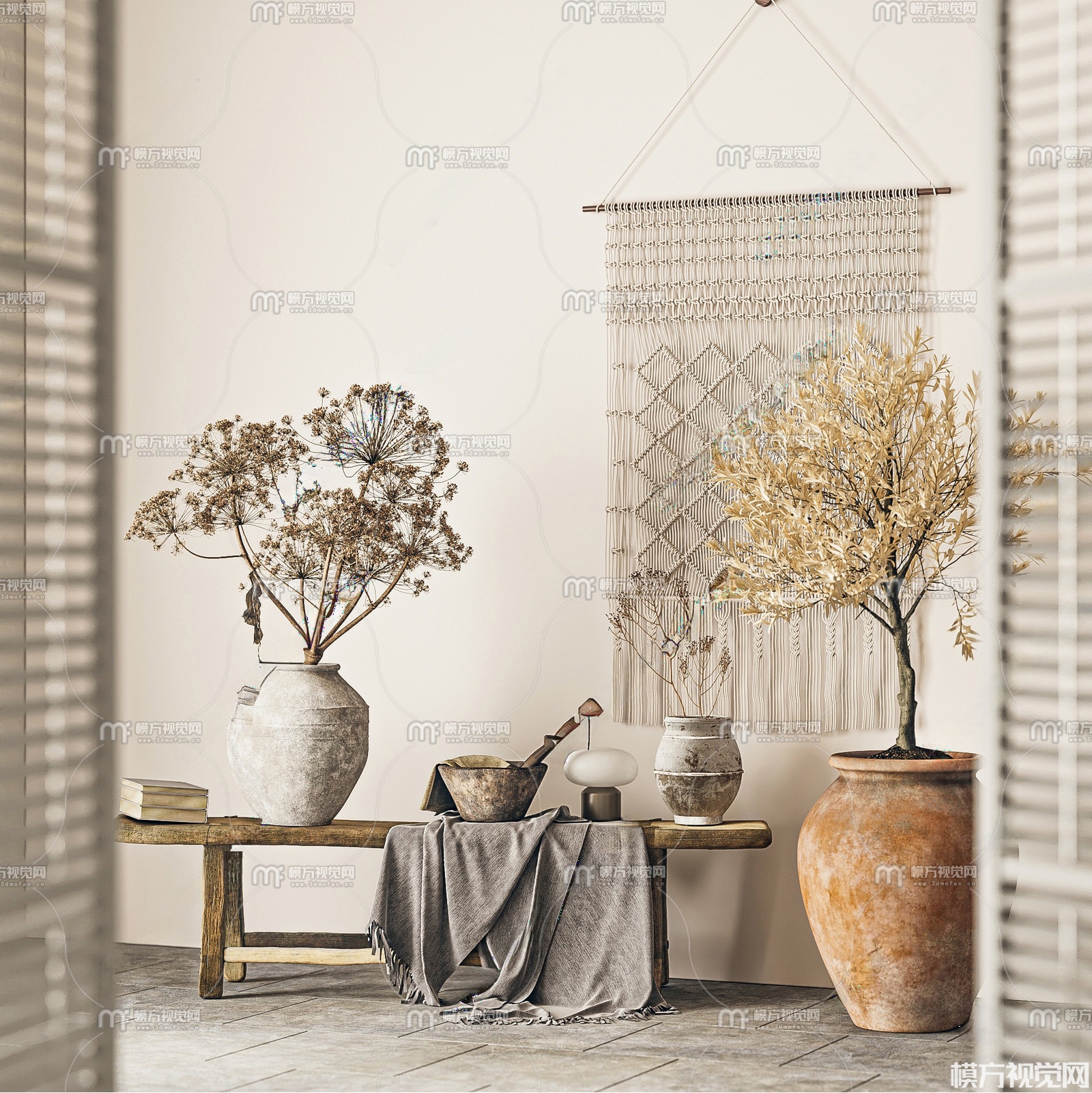 侘寂 盆栽 饰品摆件3D模型(ID:0029599)