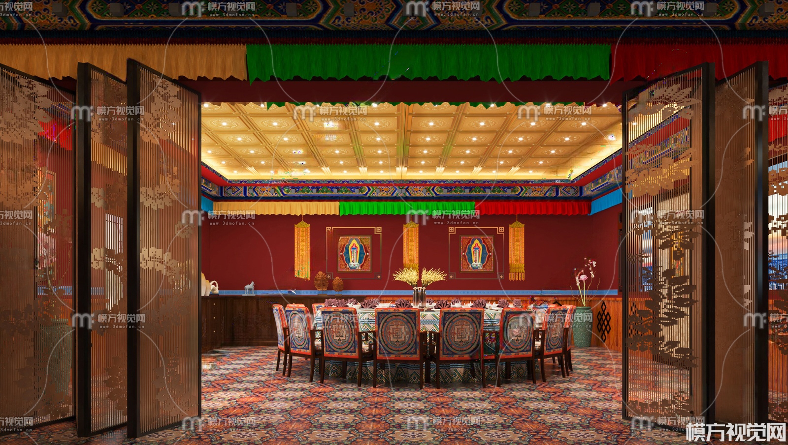 中式 藏式餐厅包间3D模型(ID:0029608)
